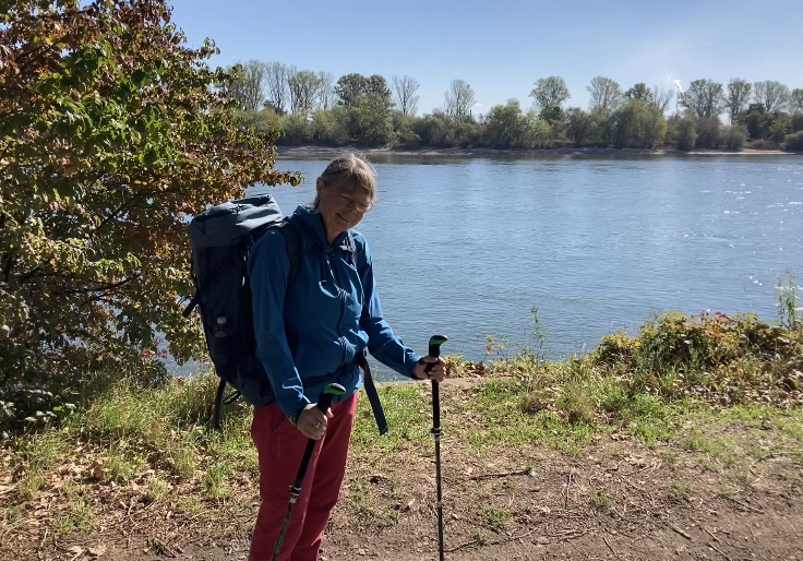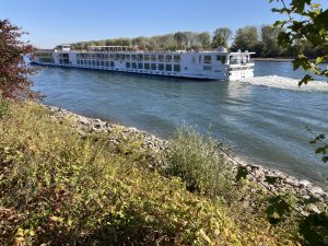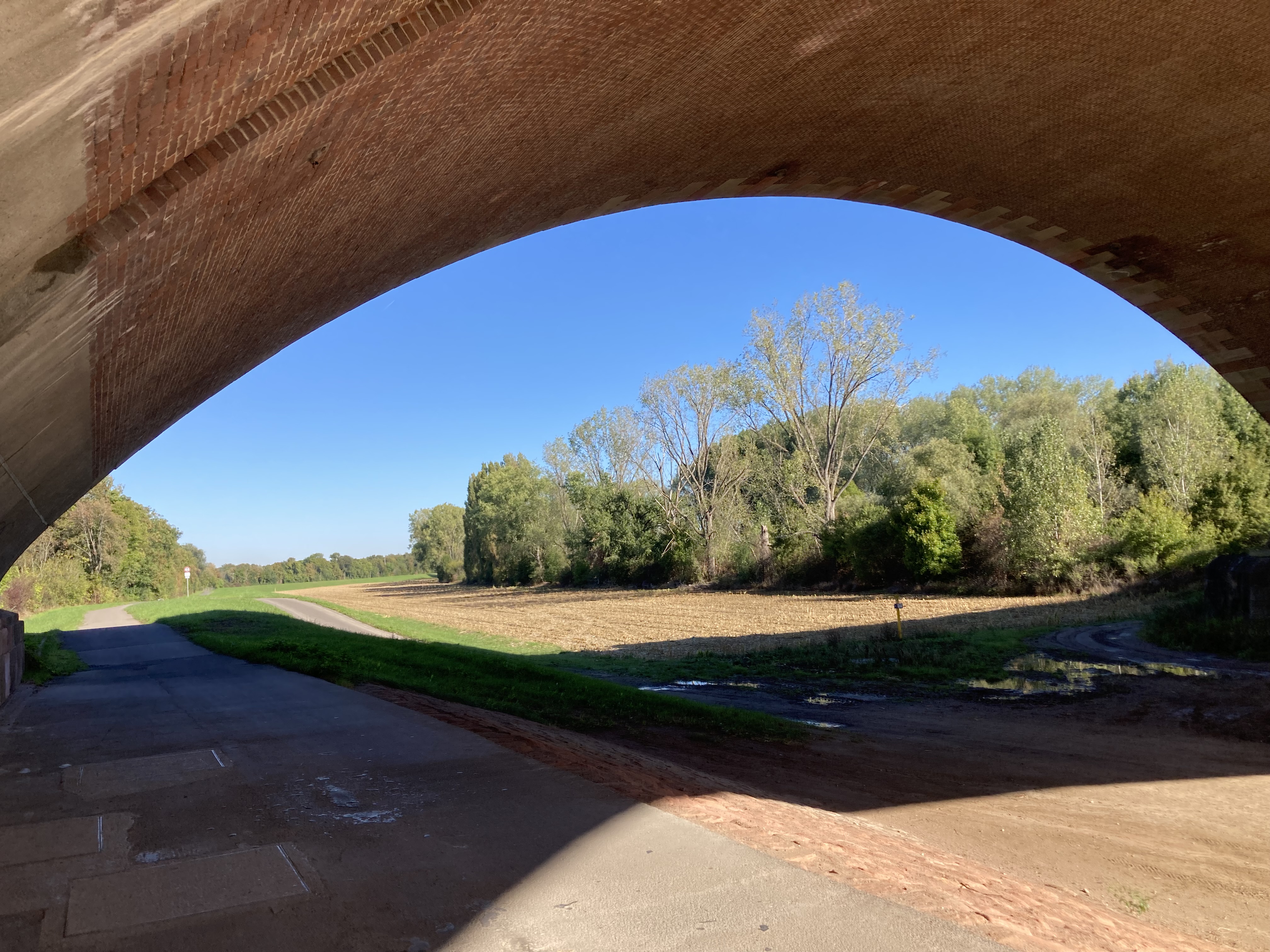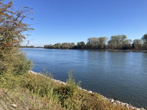Nach endlos erscheinendem BASF-Land kommt eine Autobrücke über den Rhein und mein Weg zieht sich danach am Fluss entlang.