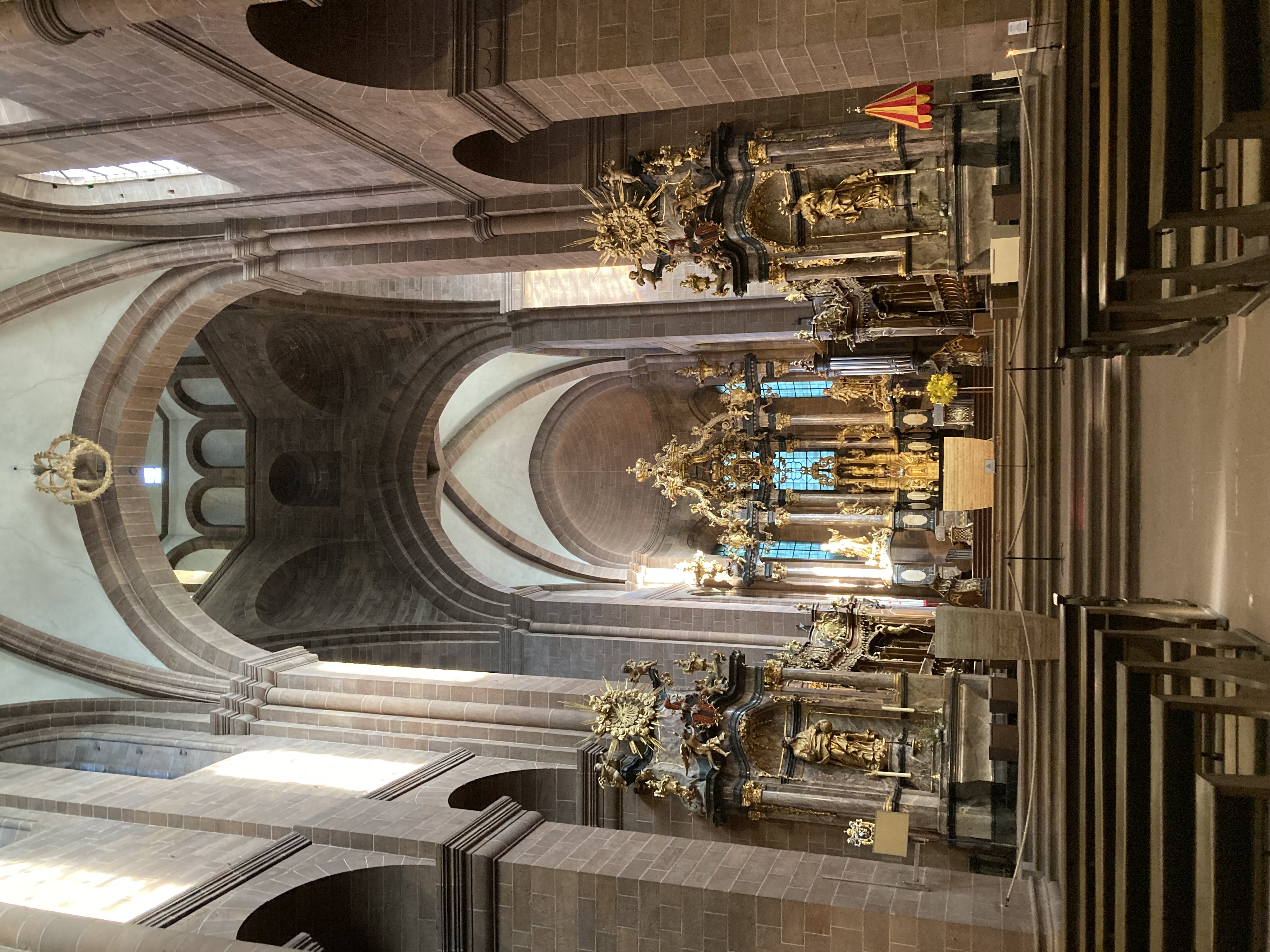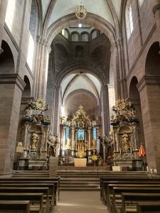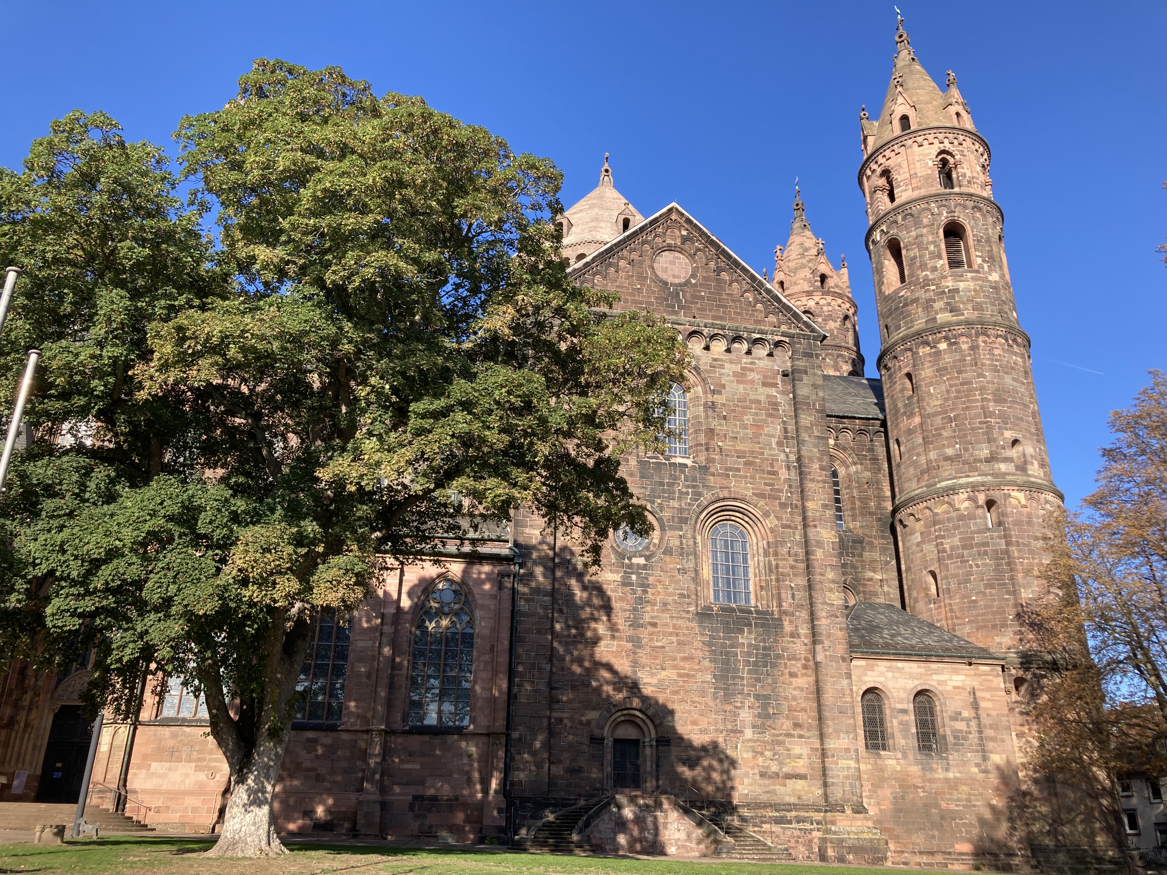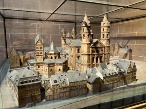 Die letzten drei Kilometer vor Worms sind eine körperliche Qual, aber alles ist nach einem Schläfchen im Hotelzimmer wieder vergessen. Sightseeing im Abendlicht, ein Vergnügen zum Fotografieren. Wieder begegnet mir ein gigantischer Dom, worauf ich ja schon in Speyer vorbereitet wurde: der zweite der drei Kaiserdome. Es gelingt mir nicht, den ganzen Dom in einem Foto einzufangen. Nur ein Modell kann einen Überblick über seine Ausmaße verschaffen.