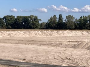 Das ist kein Sandstrand, sondern die merkwürdige Hinterlassenschaft eines Betriebes, dessen Funktion ich anhand seiner Aktivitäten nicht herausfinden kann.