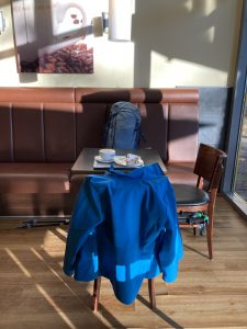 Ich stapfe am frühen Morgen so vor mich hin, geleitet von meinem Handy, und bemerke beim offene Löwenmaul erst wie sehr ich selbst Hunger habe. Ich laufe durch ein Stadtviertel, in dem es leichter ist einen Döner zum Frühstück zu bekommen, anstatt ein Bäckerei-Café zu finden. Ich fange gerade ernsthaft an, mir wegen meiner kulturellen Engstirnigkeit Gedanken zu machen, da gehen meine Erwartungen doch noch in Erfüllung. Gustav und legen die erste Pause für ein ordentliches Frühstück ein.