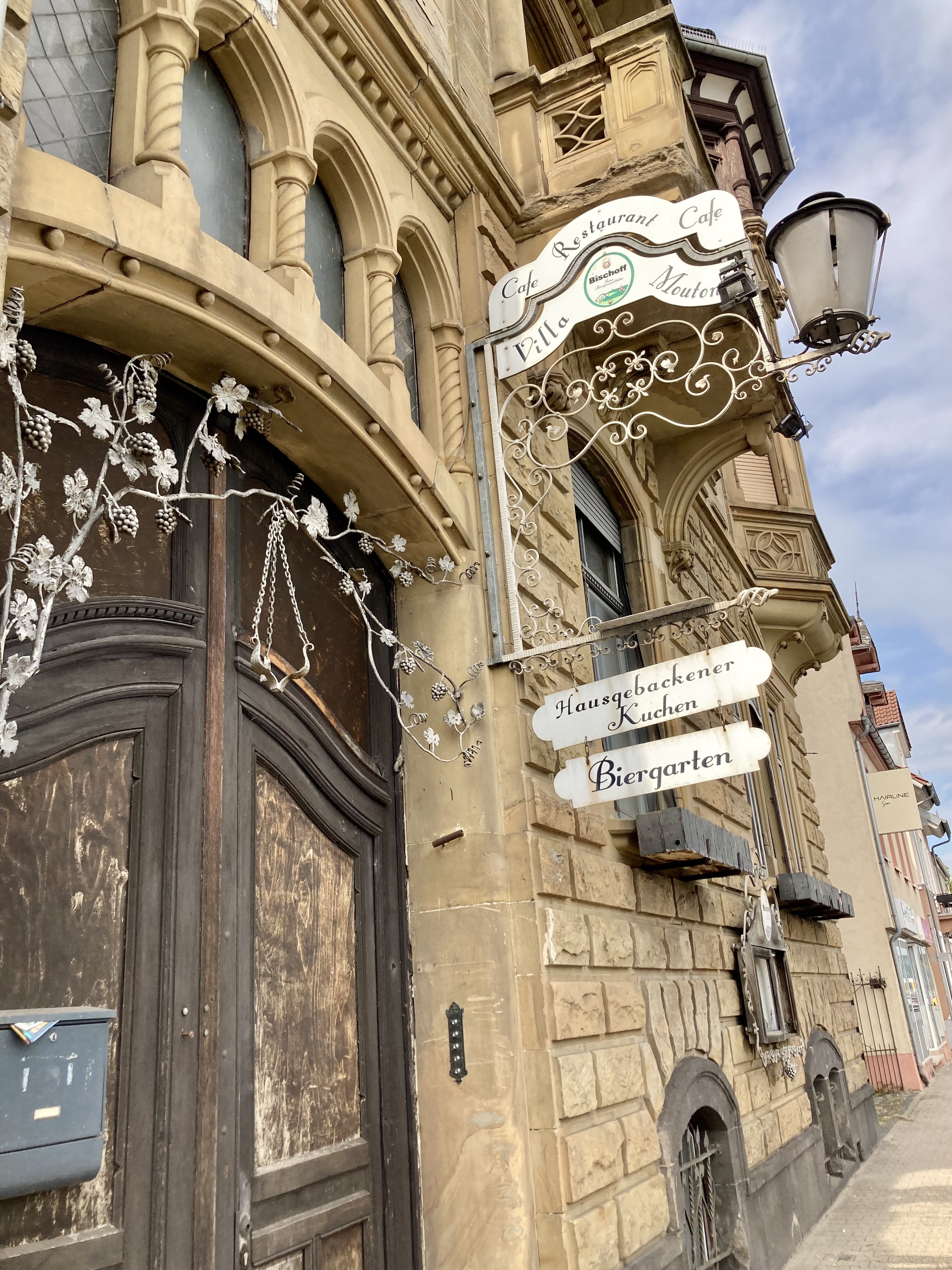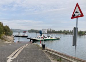 Danach geht es eine Weile dem Rhein entlang, so wie es mir gefällt. Ich schaue der Fähre beim Ablegen zu und stelle fest, dass manche prachtvolle Bauwerke entlang der Straße schon bessere Zeiten gesehen habeb.