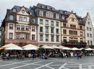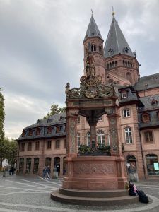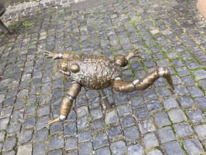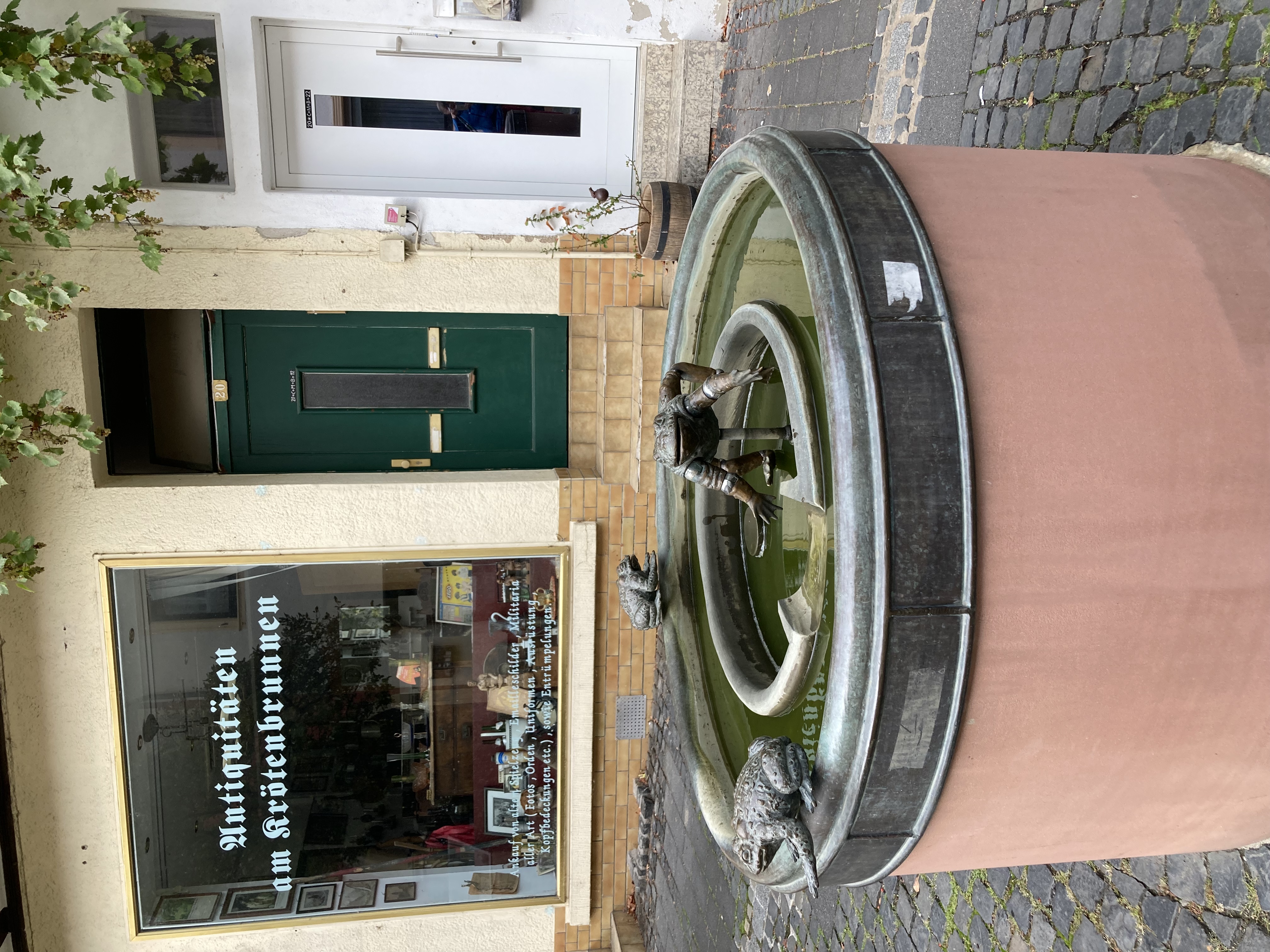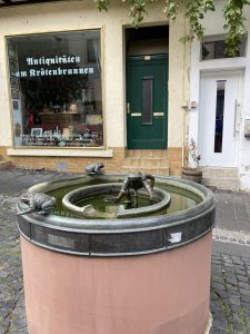Ich bin schon fast am Ende des Ortes, da erinnere ich mich, dass ich Oppenheim mit dem Begriff „Krötenbrunnen“ verbinde und es fällt mir wie Schuppen von den Augen: ja, da steht doch der Brunnen mit den komischen Fröschen. Das muss diese Krötenbrunnen sein, und ich laufe noch einmal zurück zum Fotografieren.