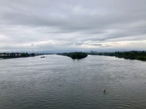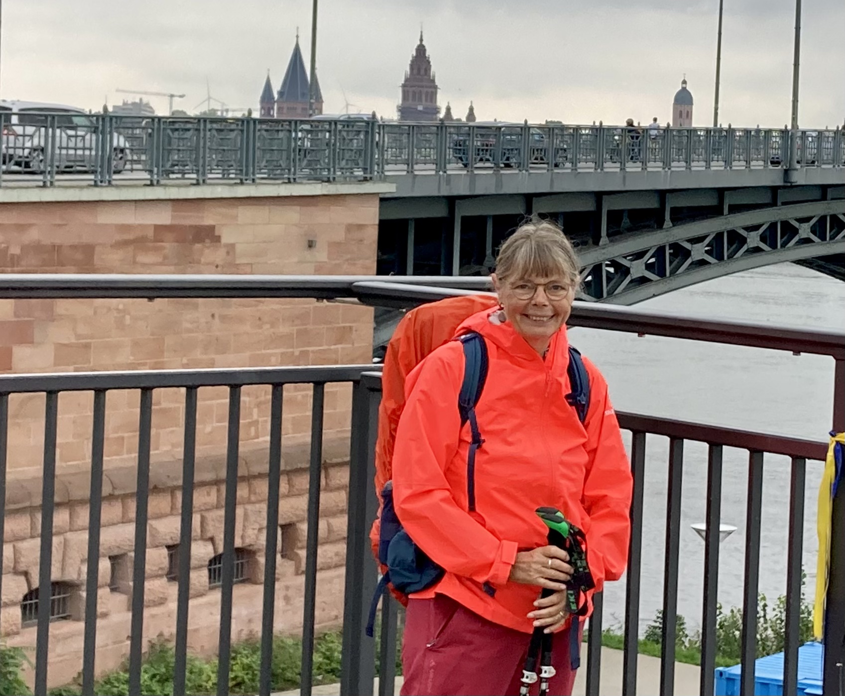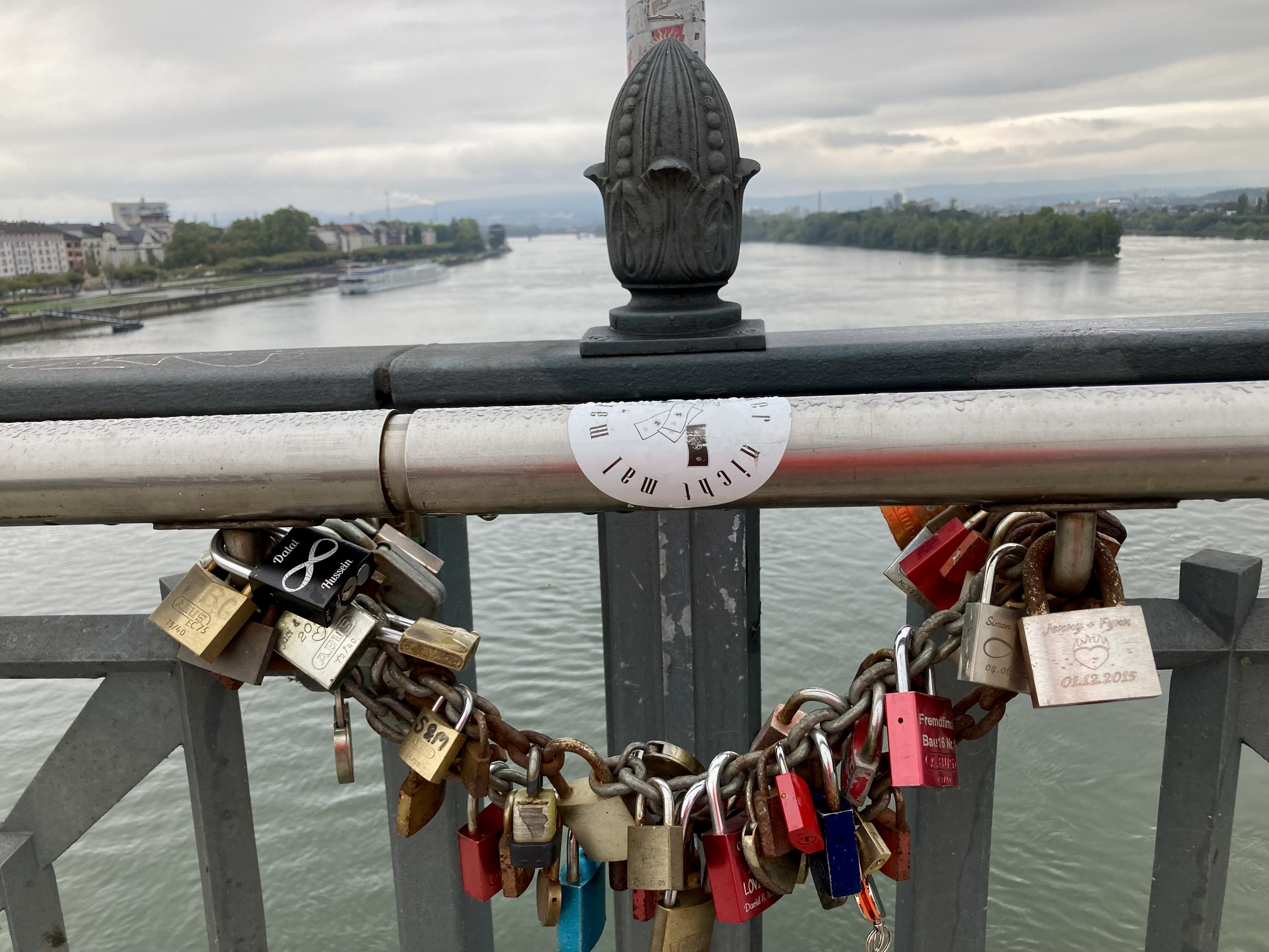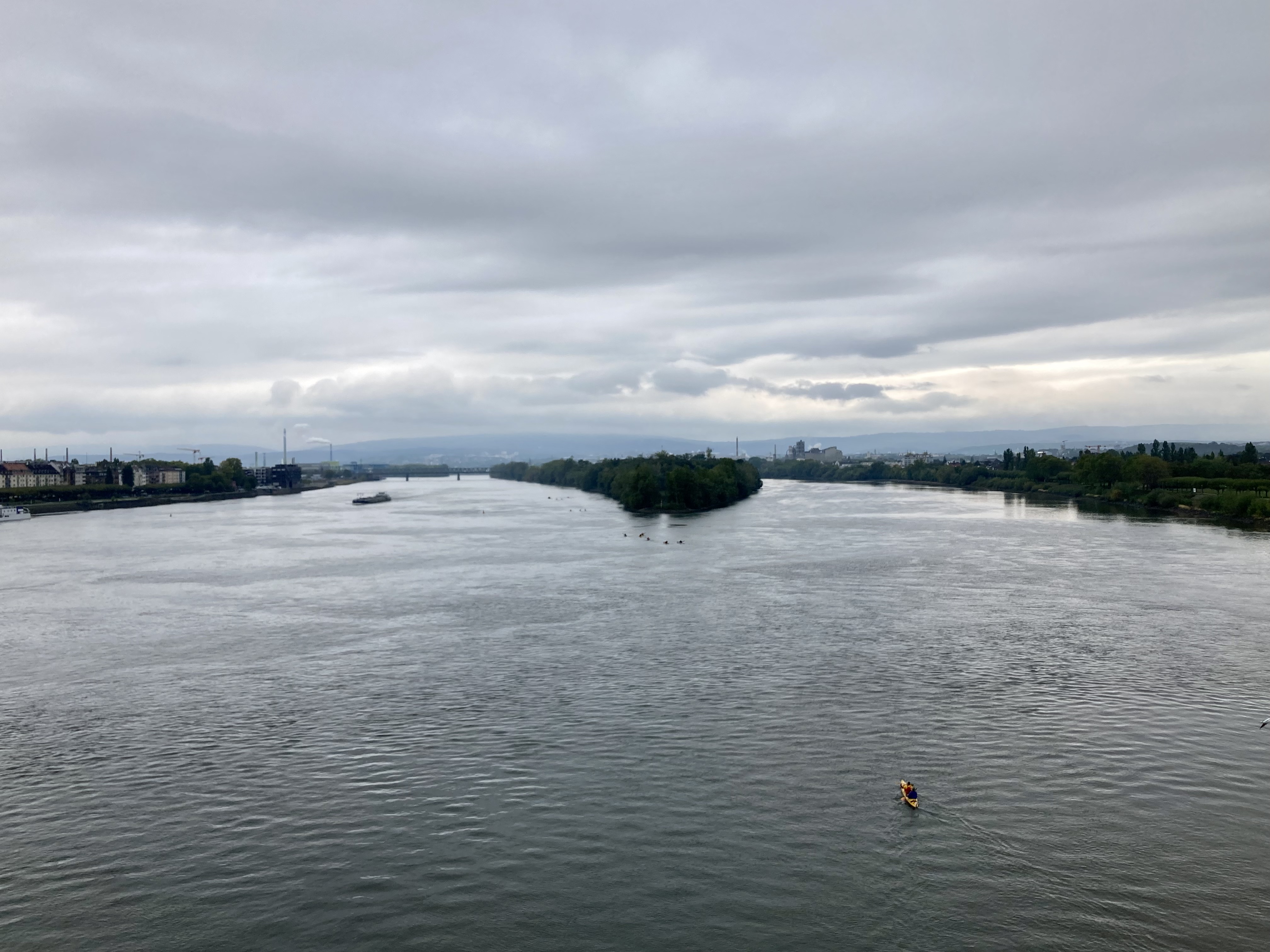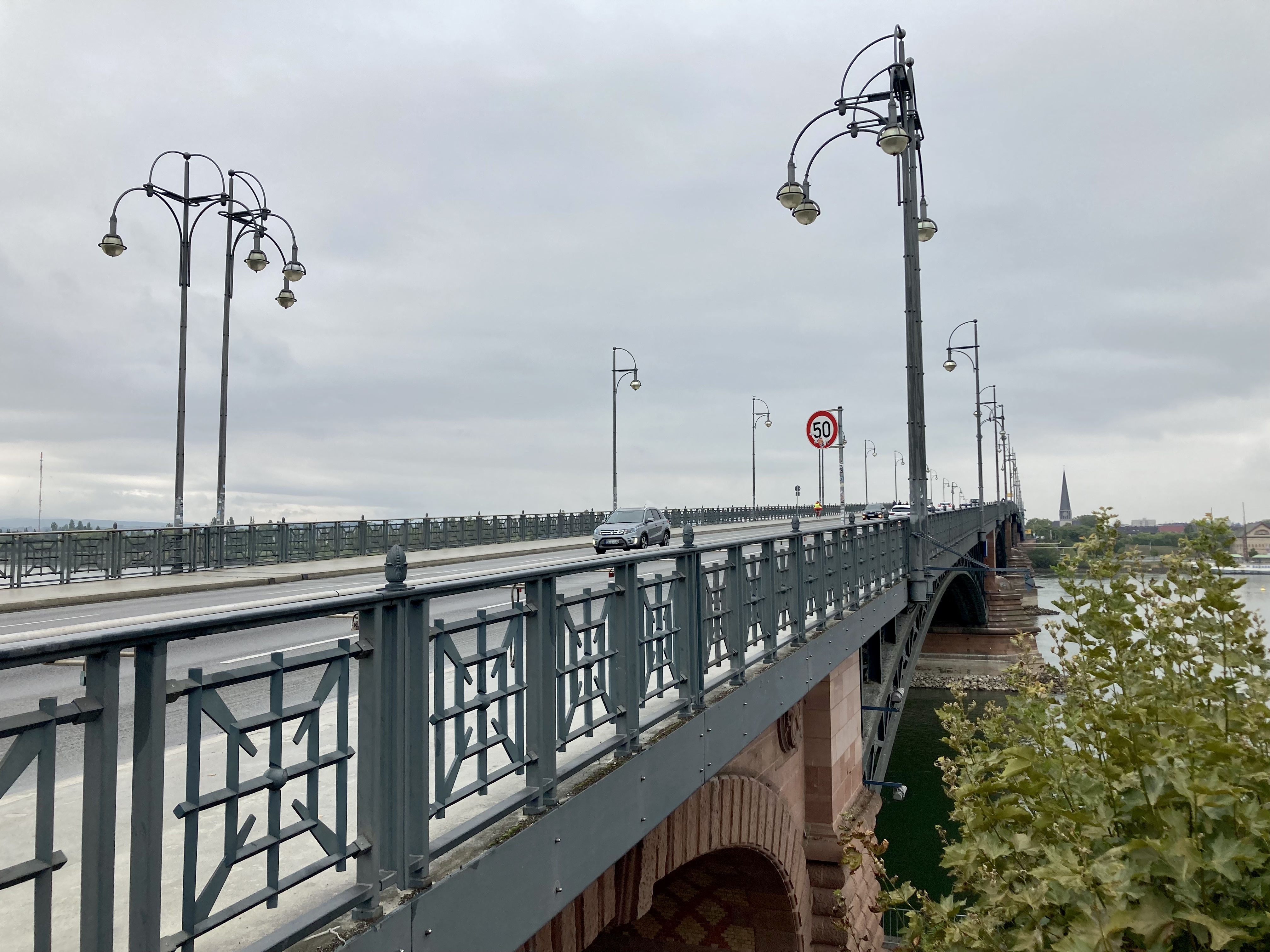 Dann laufe ich über die Brücke zur anderen Rheinseite.
