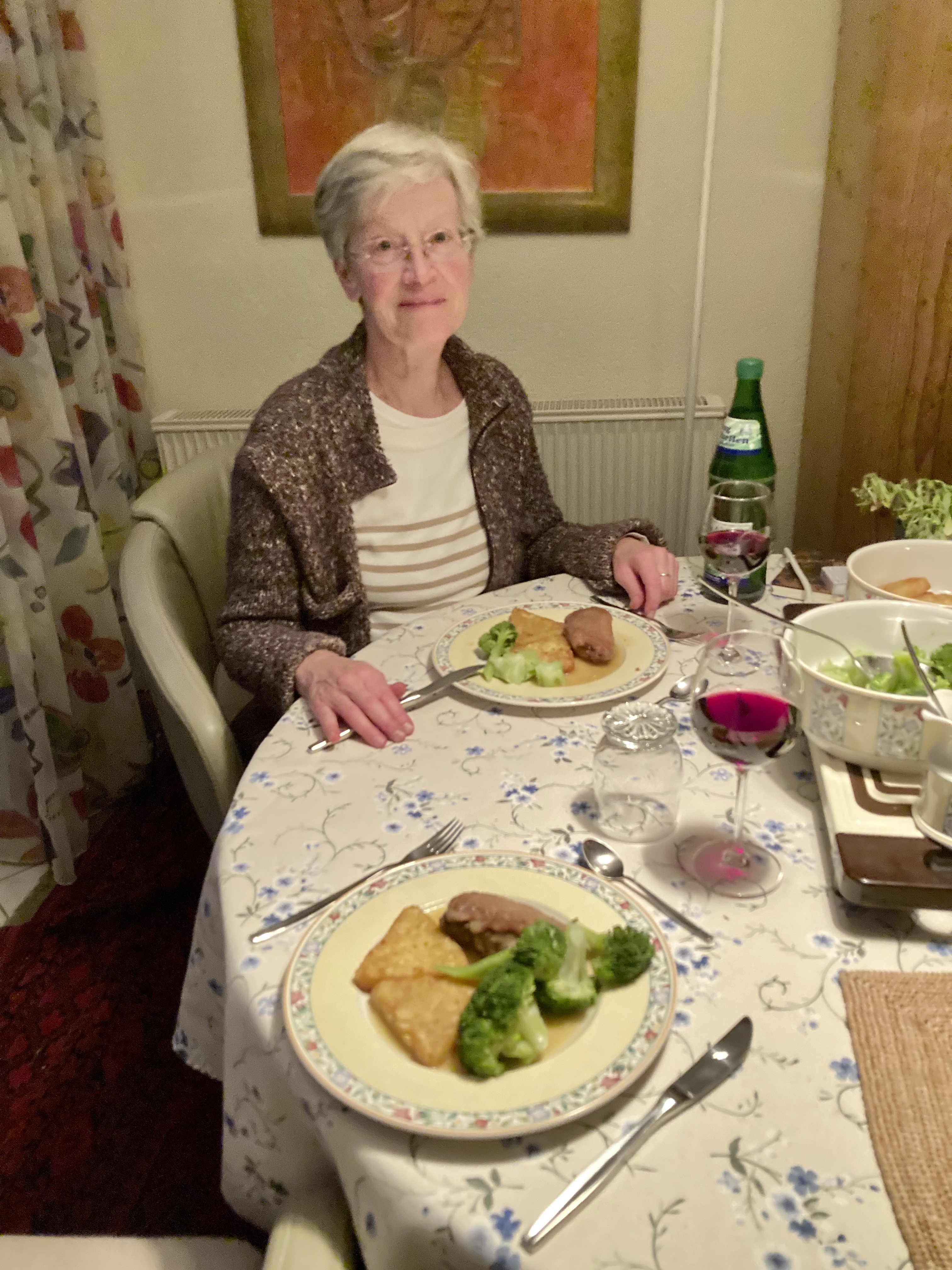 Um kurz nach vier komme ich bei Gabi, einer Schulfreundin, und ihrem Mann pünktlich zur Kaffeezeit an. Am Abend genießen wir ein vorzügliches Sonntagsessen. Wir quatschen, quatschen und quatschen. Wie wunderbar, endlich hier in Wiesbaden zu sein! Ich habe mich lange darauf gefreut.