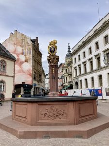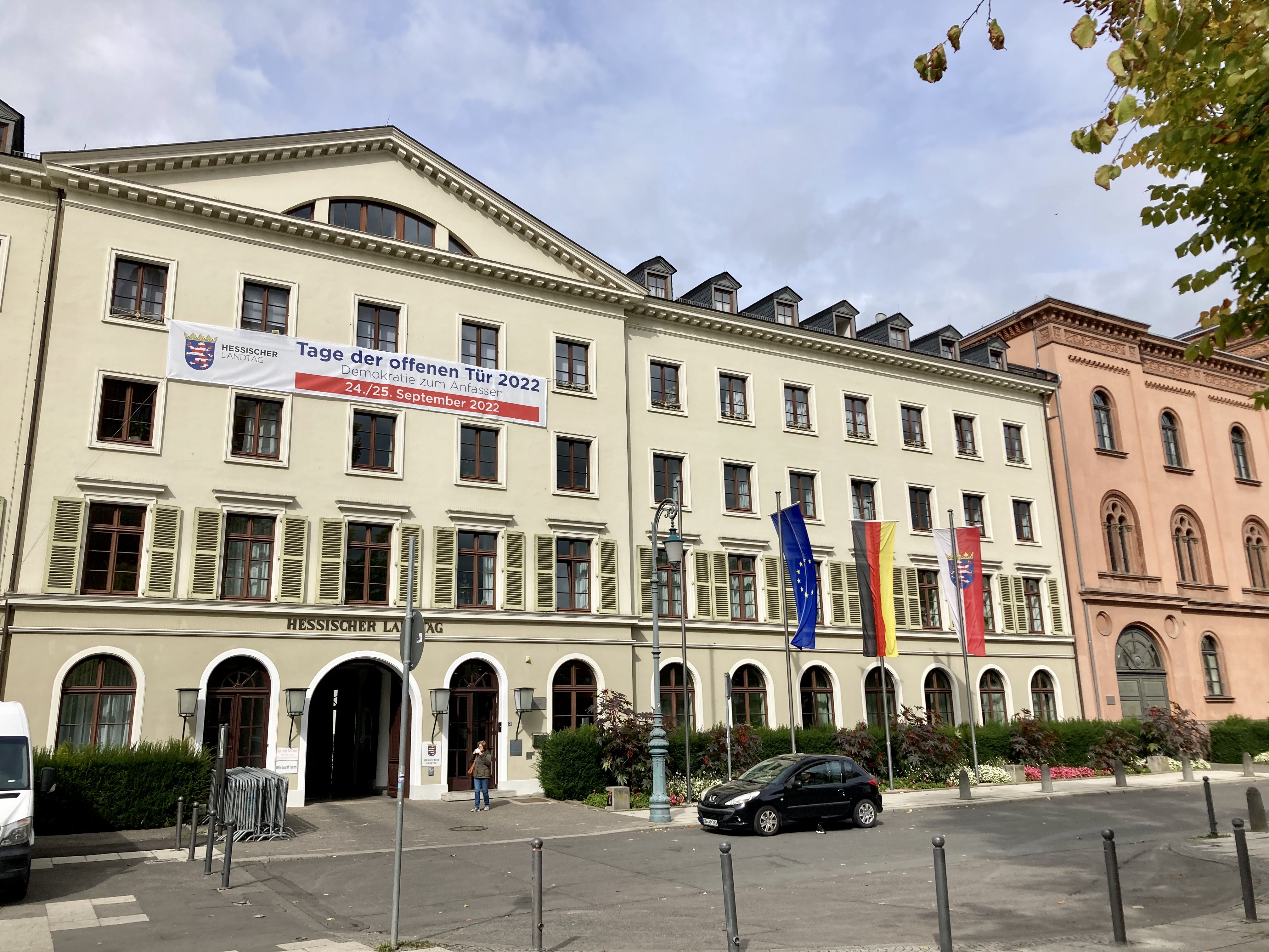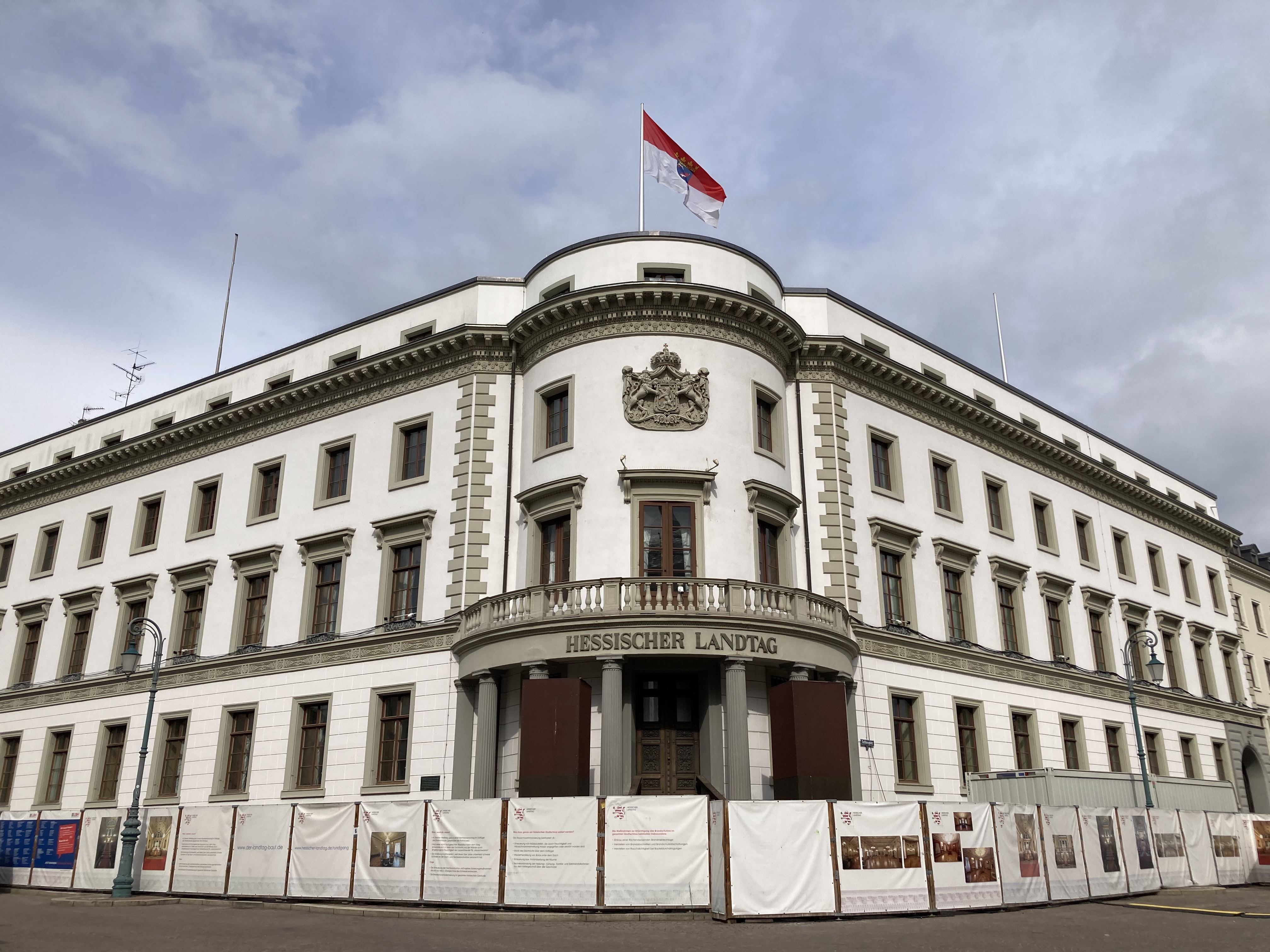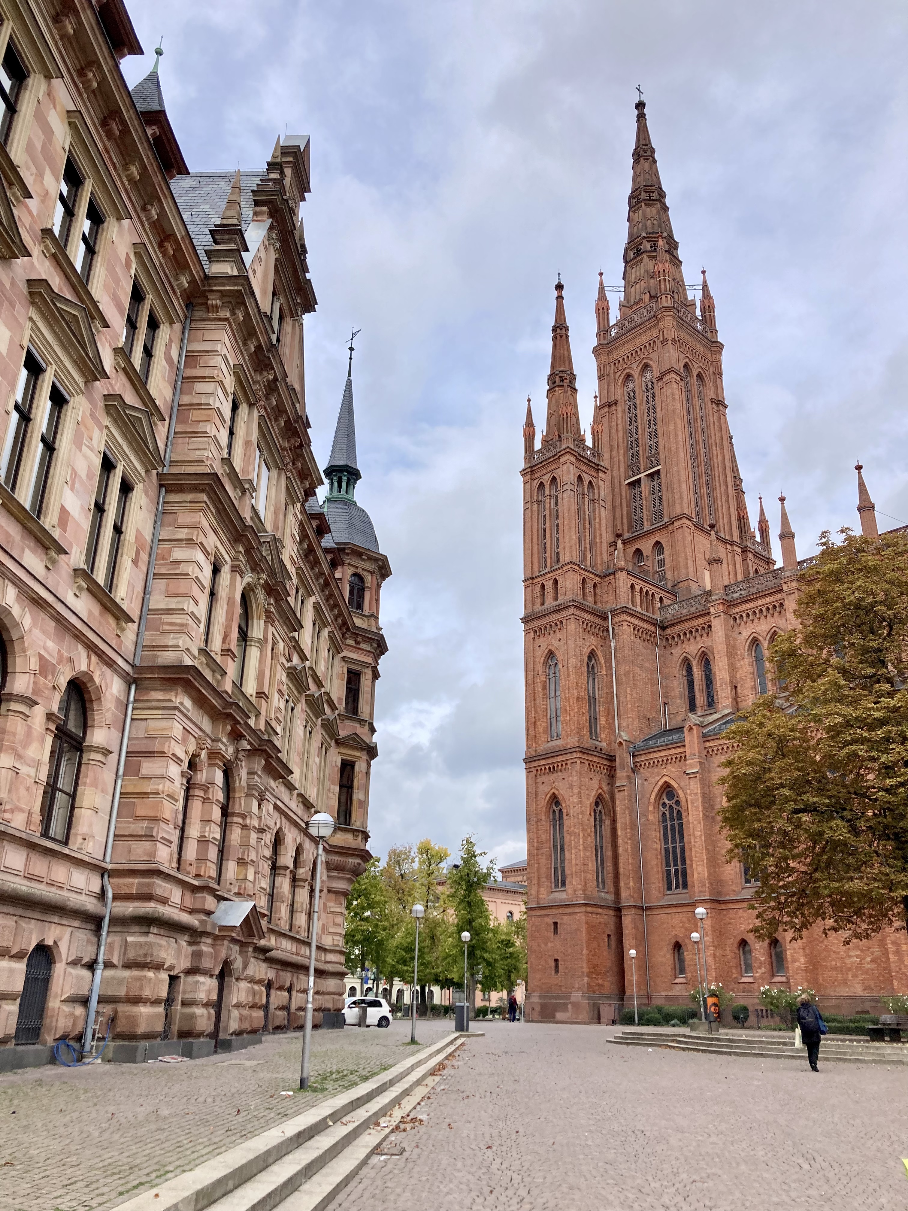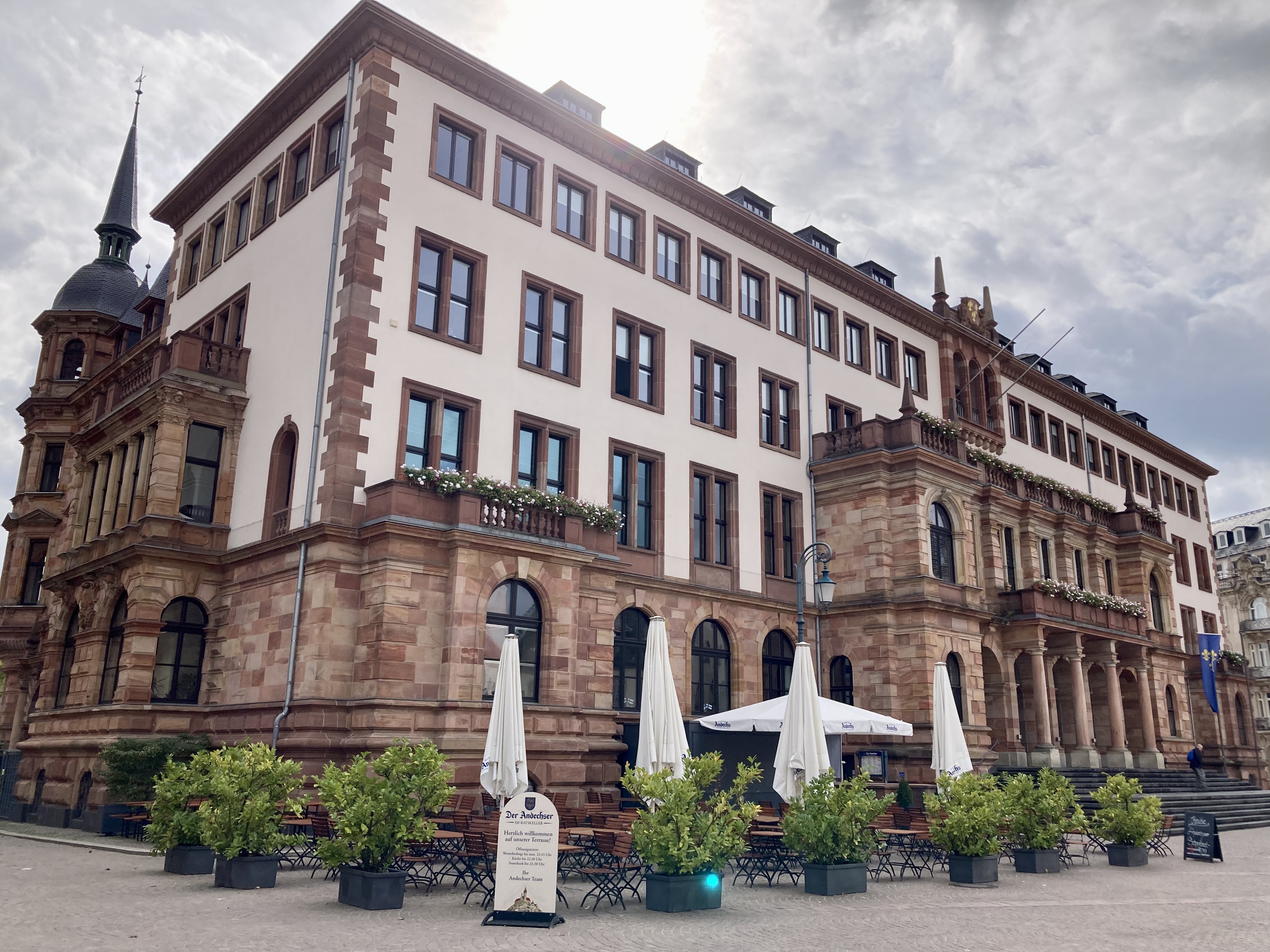 Wir laufen zur evangelischen Marktkirche weiter und sehen den hessischen Landtag. Dann lichte ich noch das Rathaus, das Stadtschloss, den Marktbrunnen und das Standesamt ab.