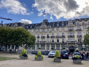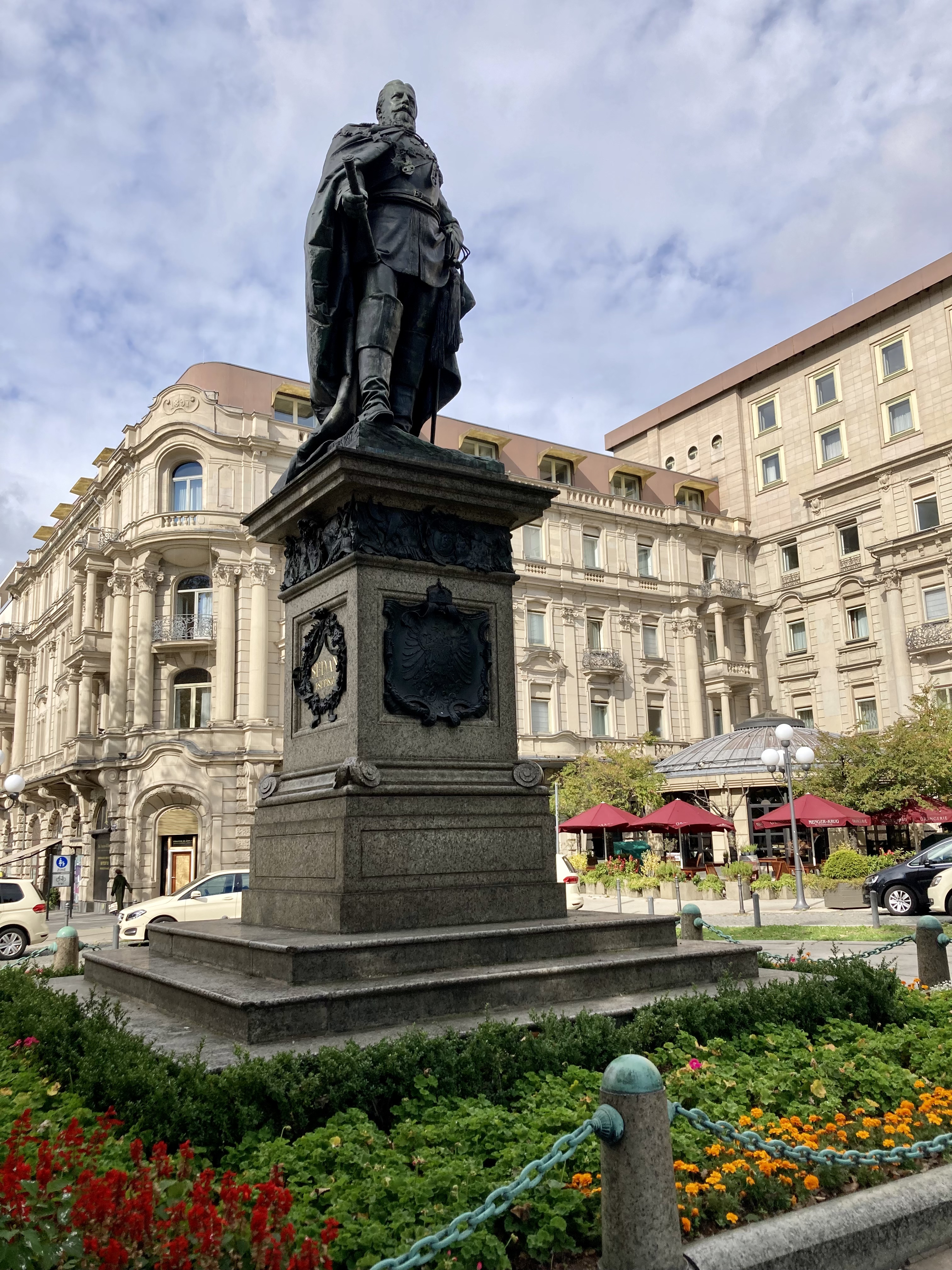Wir werfen einen Blick auf die Staatskanzlei, dem Sitz des hessischen Ministerpräsidenten, und dem Nobelhotel Nassauer Hof. Dann würdige ich noch Kaiser Friedrich III mit einem Foto.