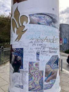 Auf dem Weg in Richtung Marktplatz erfahre ich etwas vom „Jesus von Wiesbaden“, einem Mann, der regelmäßig Litfaßsäulen mit Bibelsprüchen beschriftet.