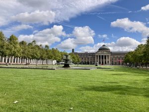 Im Kurhaus, einem der prunkvollsten Festbauten Deutschlands, komme ich aus dem Staunen nicht mehr heraus. Vermutlich wird Wanderbekleidung in der Spielbank nicht akzeptiert, und so verzichte ich auf das Vergnügen dort mein Geld zu verspielen. Die Fontäne im dahinter liegenden Kurpark ist heute leider nicht in Betrieb.