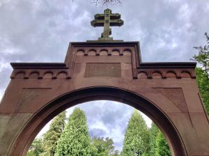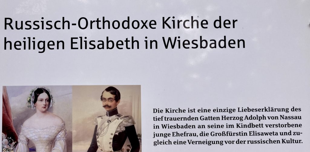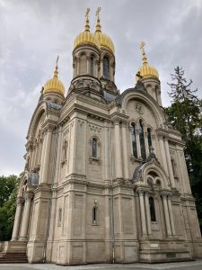 Zunächst führt der Weg vorbei am russischen-orthodoxen Friedhof von 1856, wo zahlreiche Persönlichkeiten begraben sind, die in Wiesbaden verstarben, als die Stadt noch Weltkurstadt war. Dann kommen wir zur russisch-orthodoxen Kirche.