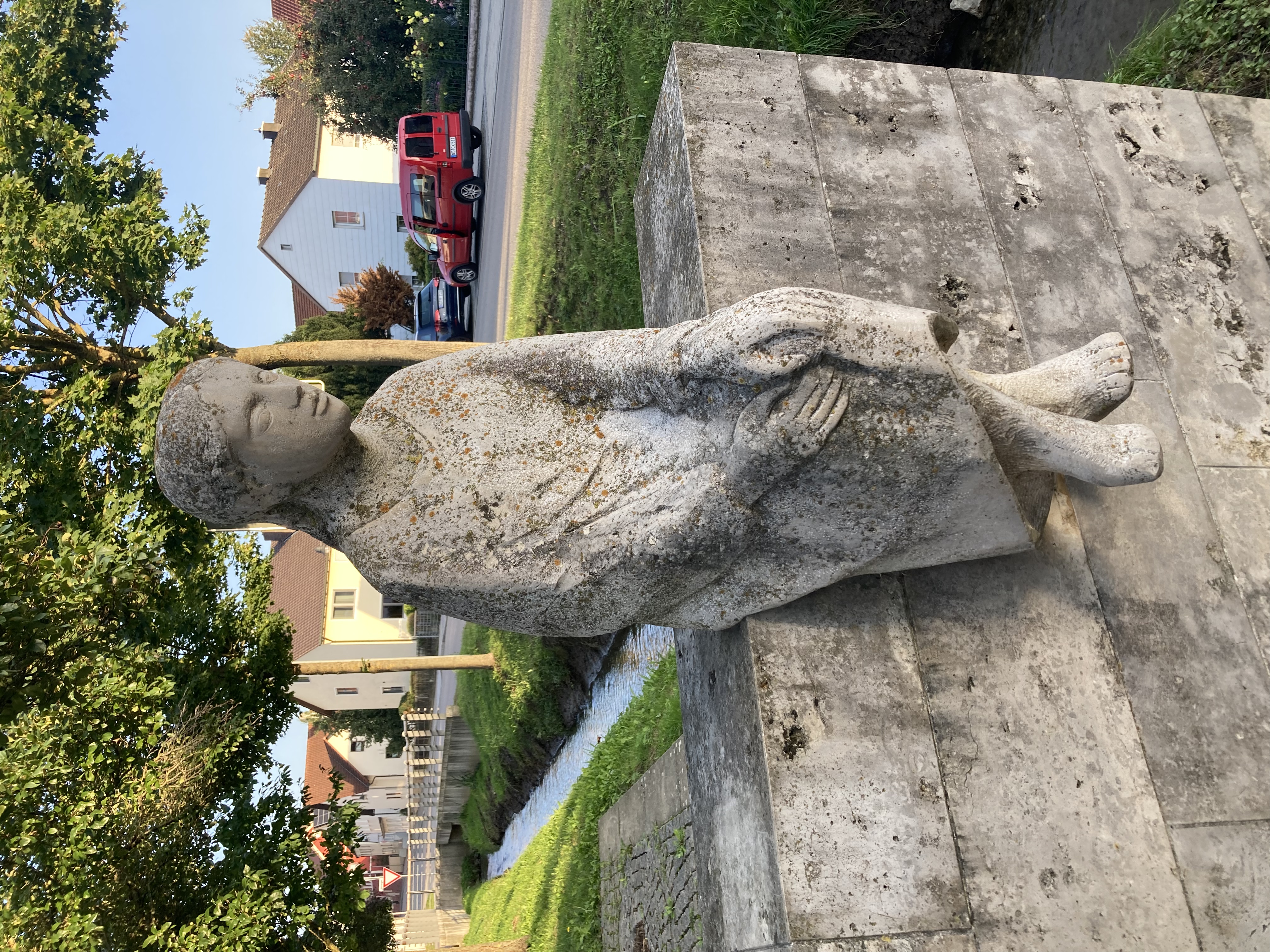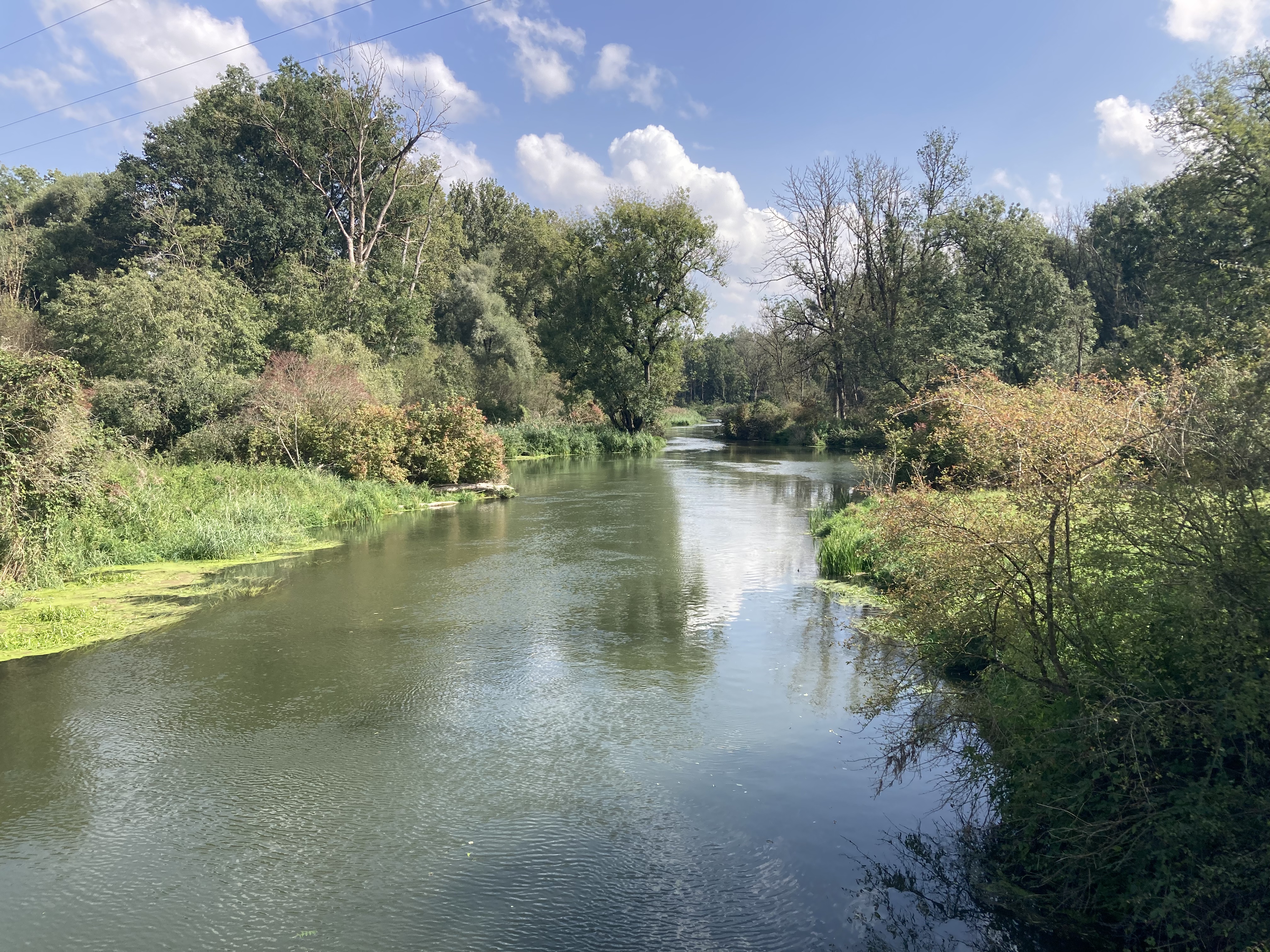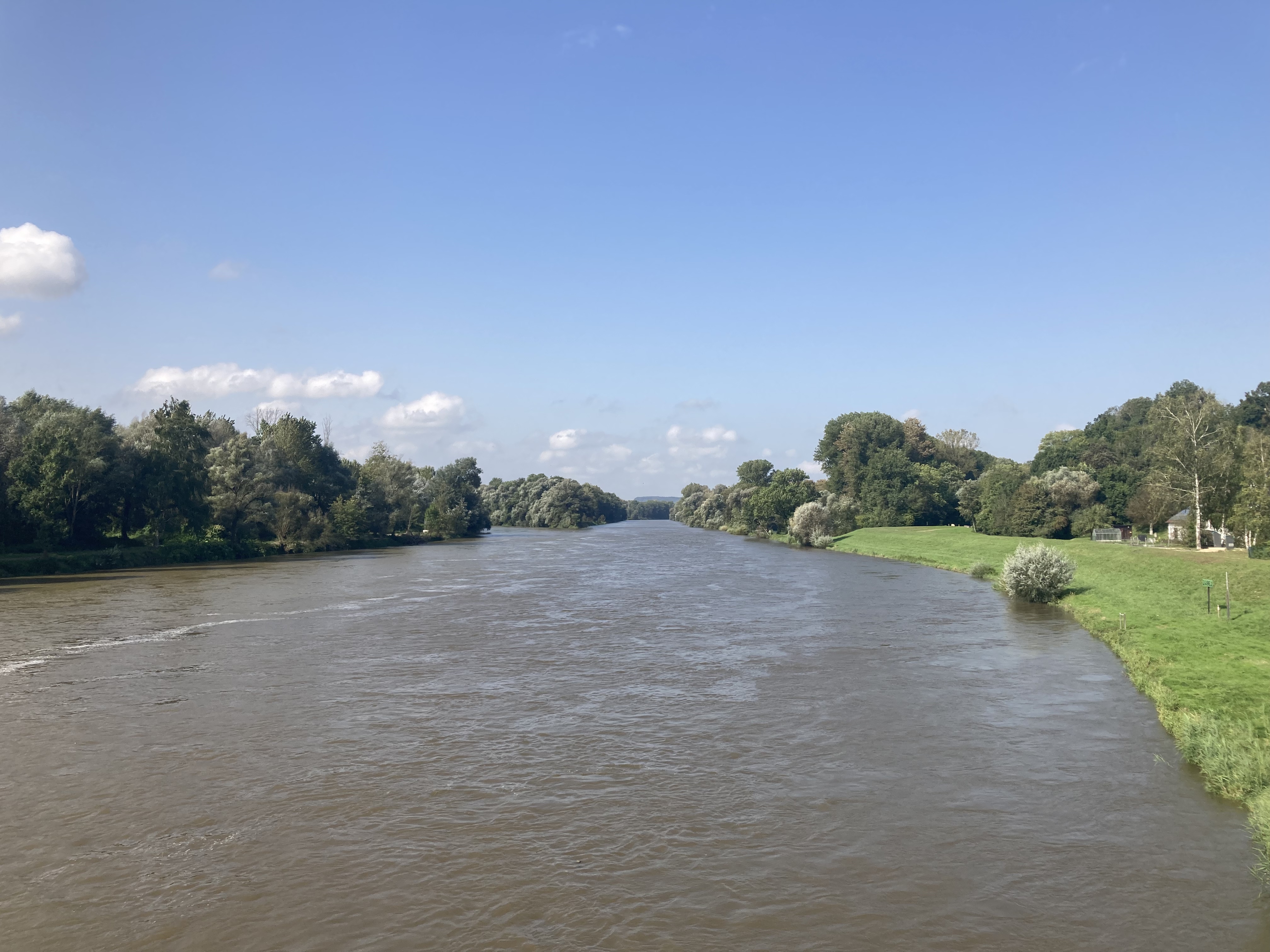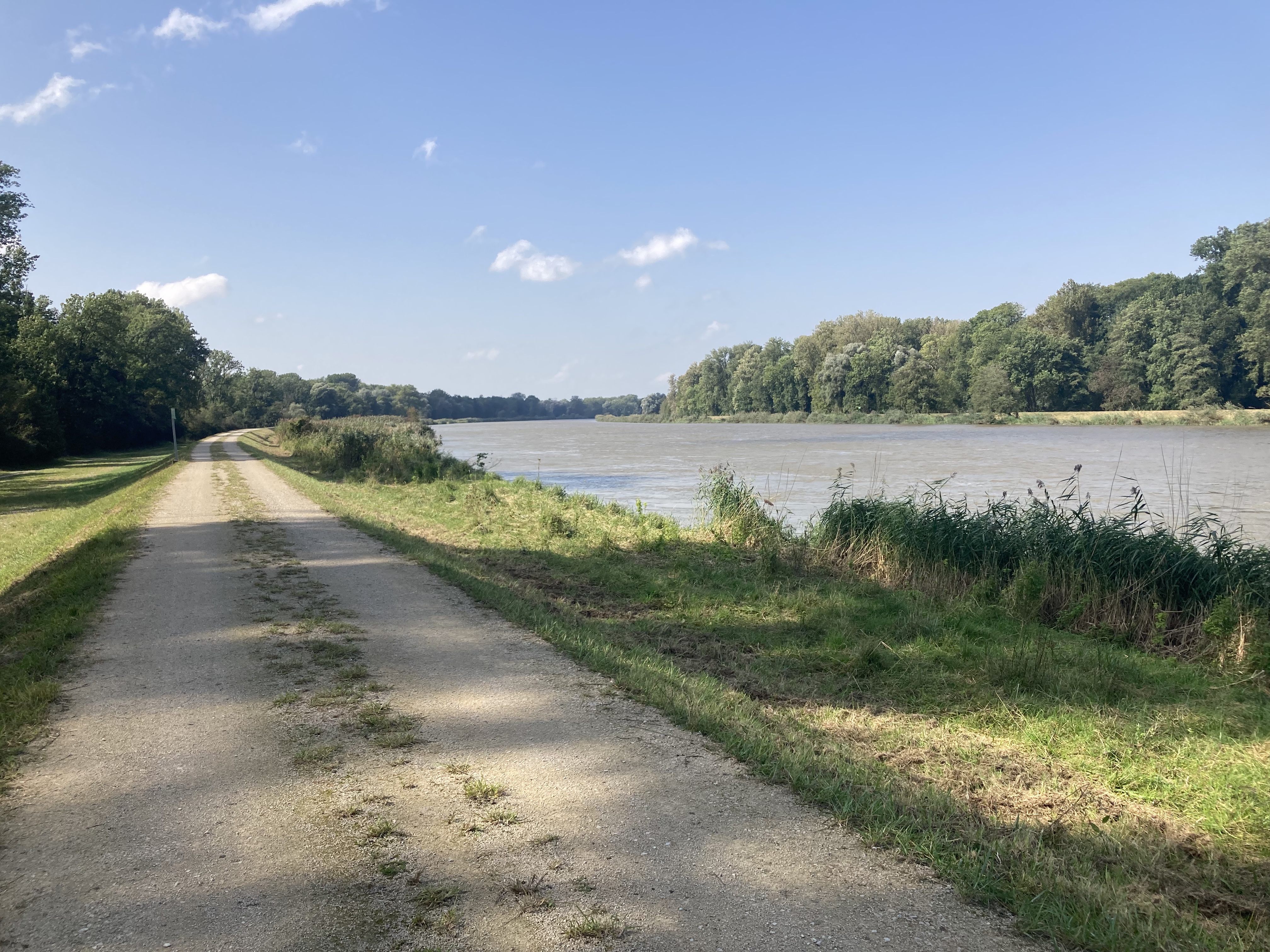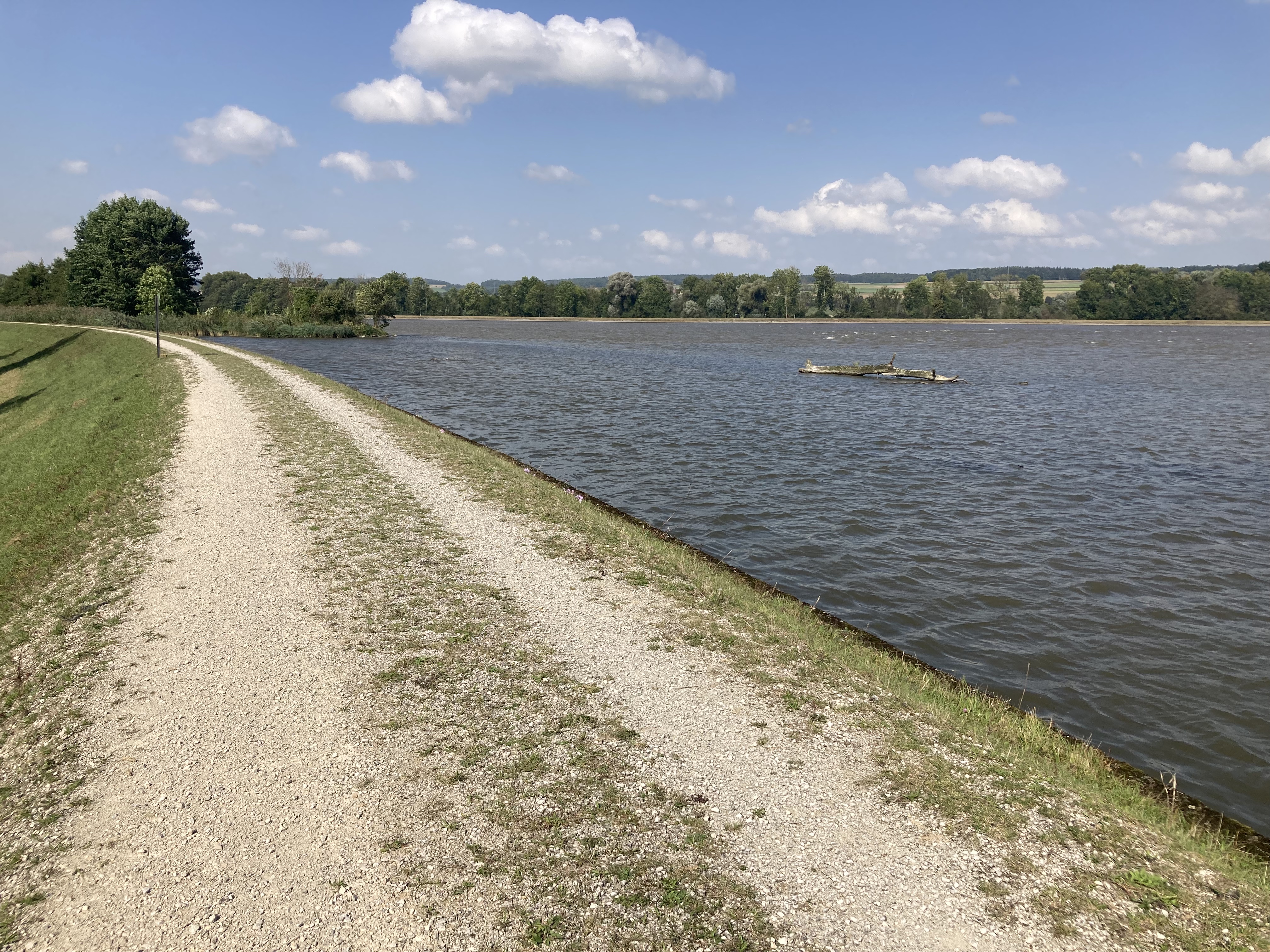 Heute führt fast zwei Drittel meines Weges an der Donau entlang. Die Sonne scheint angenehm und ich suche ein Bänkchen am Fluss, wo ich Tagebuch schreiben möchte. Mein Tiny-House erwartet mich erst um drei Uhr. Auf dem Damm ist es schön, aber es gibt kein einziges Bänkchen.