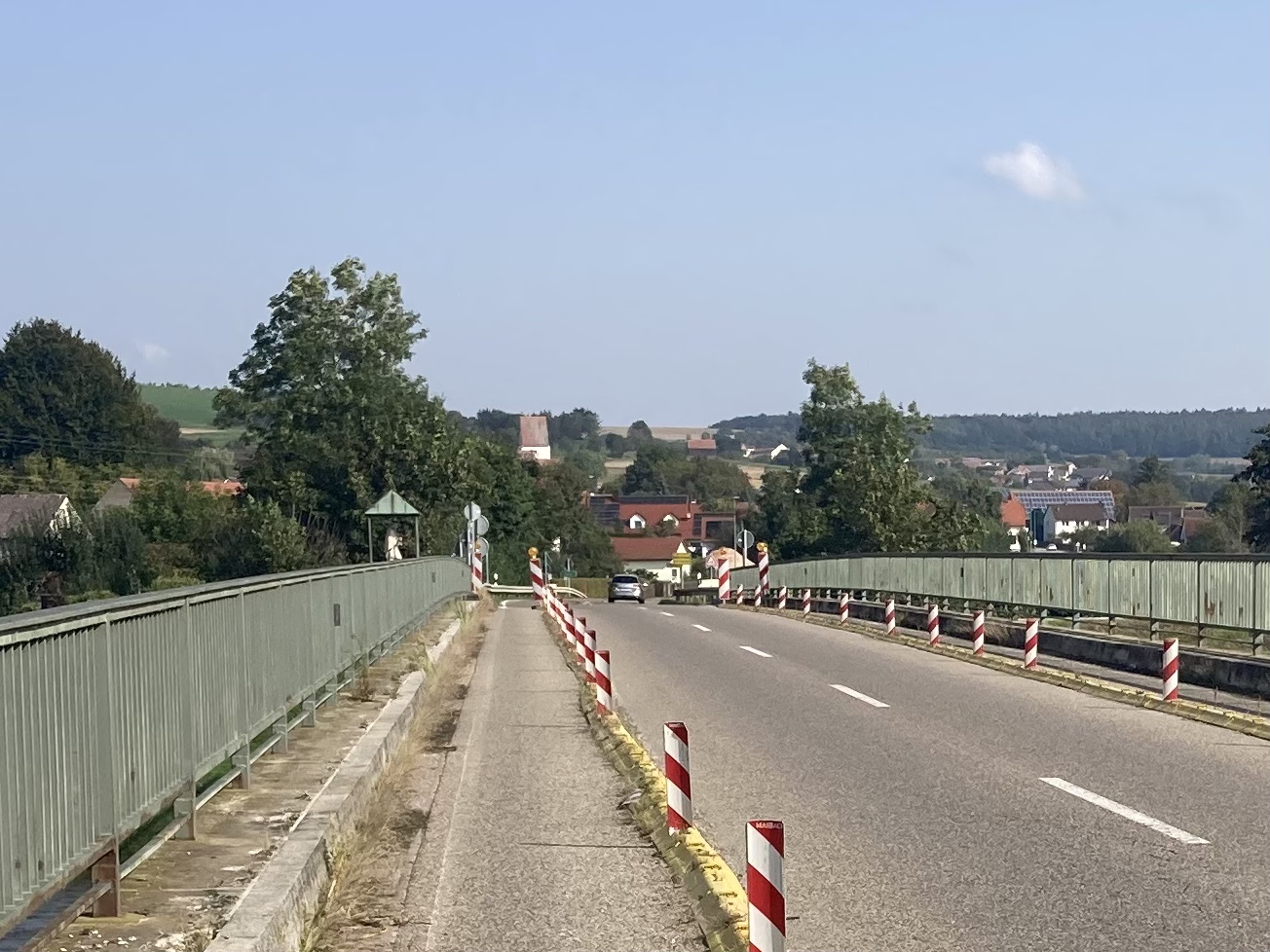 Heute werden es nur gute 12 Kilometer werden und das ist gut so, denn die letzten beiden Tage stecken mir noch in den Knochen. Von Marxheim weiß ich nur, dass es dort ein schönes Gästehaus gibt. Ich laufe zur Donaubrücke und verabschiede mich aus der Ferne vom Ort.