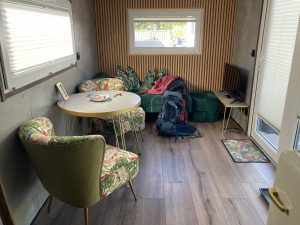 Mein Tiny-House ist dann recht gemütlich, aber haben die das Bett vergessen?