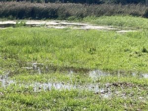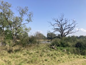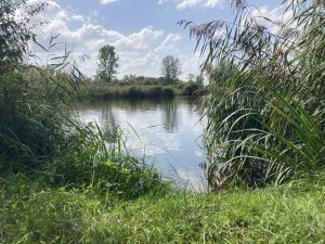 Ich sehe auf der Karte, dass sich in dieser Gegend viel Gewässer befindet und biege rechts ab auf einen Privatweg. Vielheit gibt es hier ein schönes Plätzchen für eine Mittagspause.