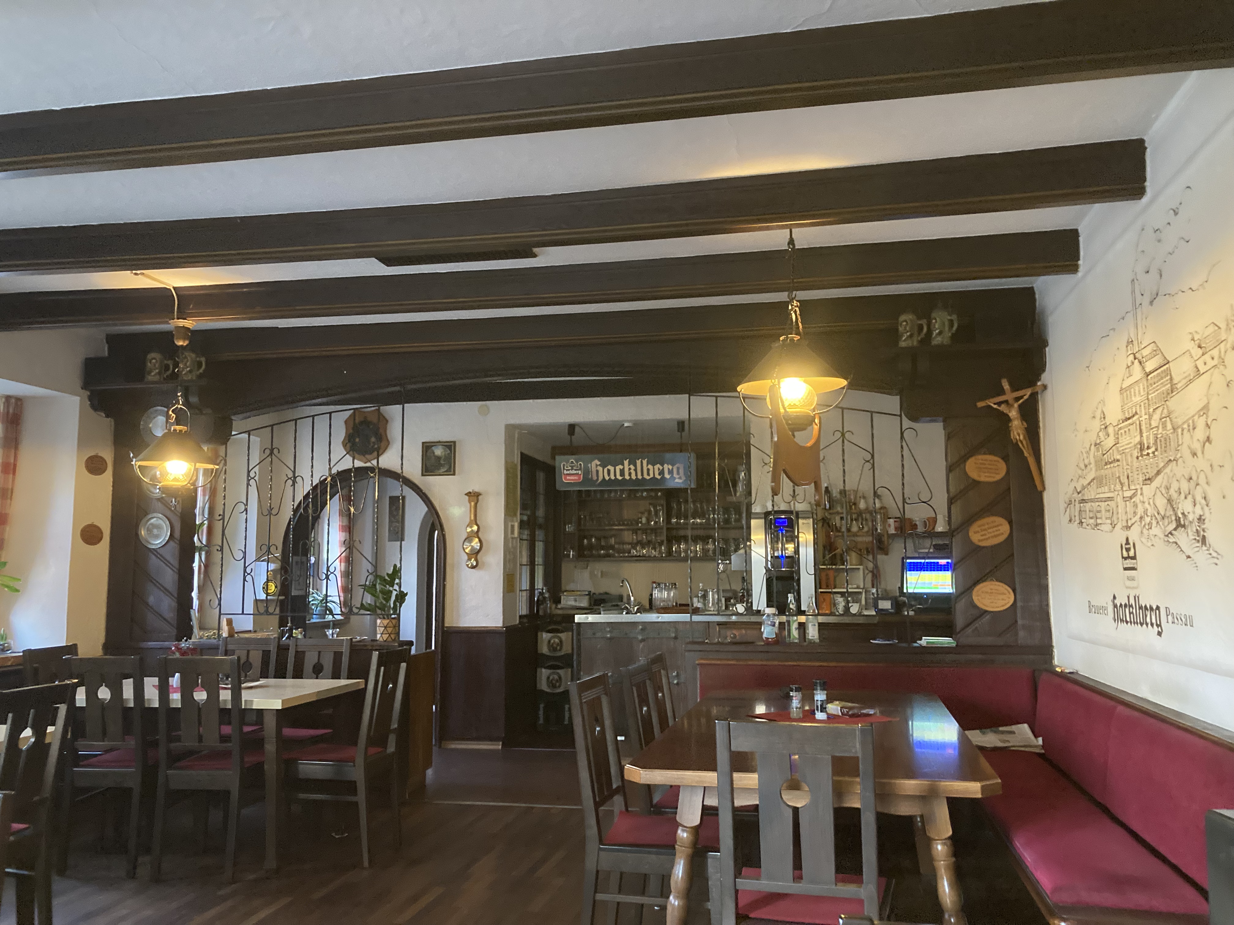 Zunächst bin ich einziger Gast und nach dem Essen beginne ich an meinem Blog zu schreiben. Ich denke darüber nach, dass ich seit dem Wasserschlössle eigentlich kaum noch Begegnungen hatte. Ich bleibe nicht allein. Ein Ehepaar isst am großen Stammtisch. Ich schreibe unterdessen emsig weiter. Dann wird der Mann neugierig und fragt: „Was machen Sie denn da die ganze Zeit?“ Ich erzähle von meiner Wanderung, der Übernachtung im Tiny-House, zeige Fotos und im Nu ist das Eis gebrochen. Fünf Minuten später sitzen wir zusammen mit der Wirtin am Tisch und unterhalten uns mindestens eineinhalb Stunden lang. Die Ortsansässigen geben mir Tipps für die morgige Wanderetappe, die Wirtin erzählt von den Herausforderungen ihrer Arbeit. So gefällt mir das. Ich gehöre für kurze Zeit dazu. Auf dem Heimweg fühle ich mich beschwingt und wieder völlig fit.