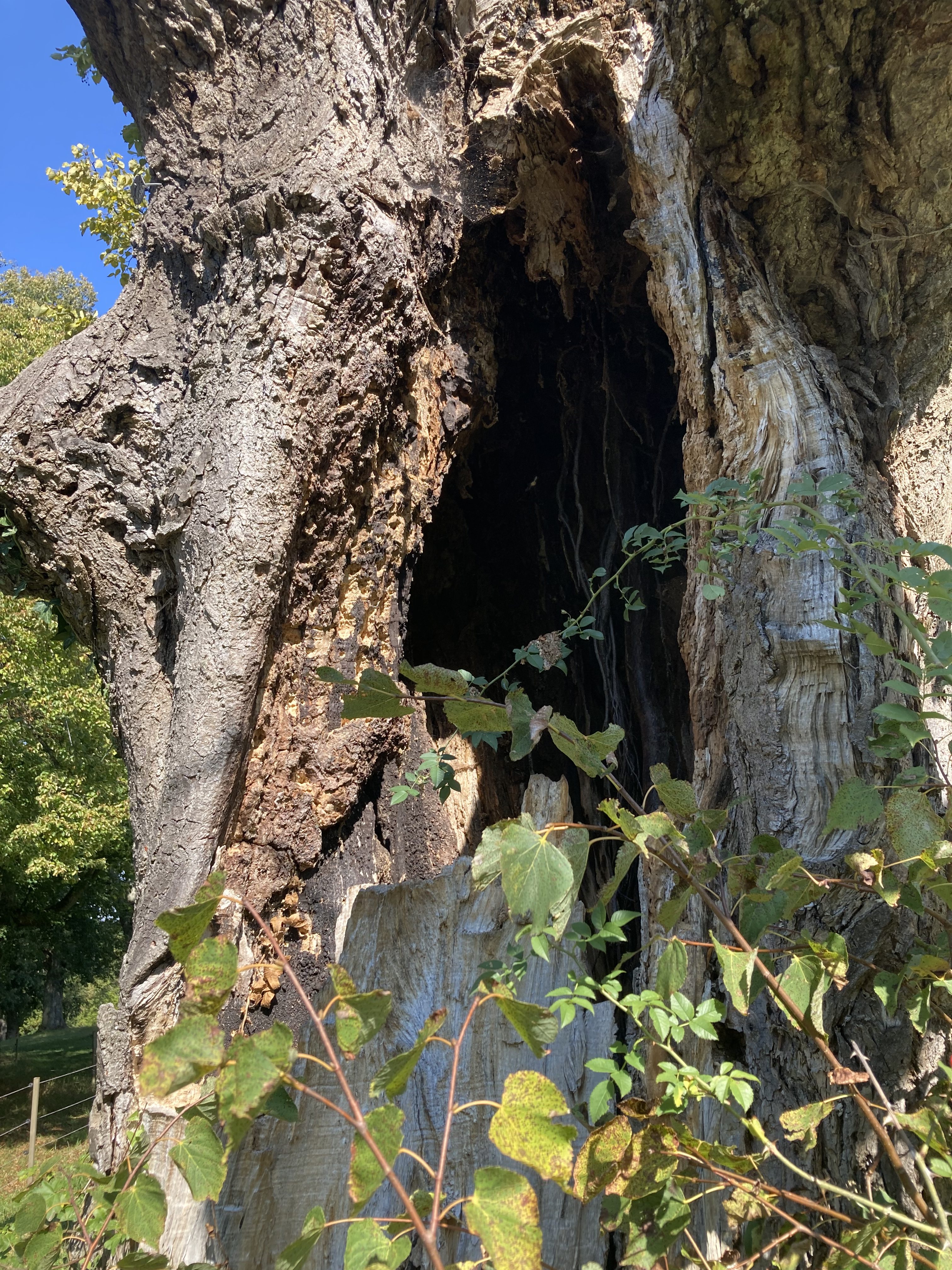 Auf der Bank rund um eine alte Linde, die schon lange ihre Krone verloren hat, verweile ich fast meditativ. Ich lege mich dann hin und schlummere, mit Gustav als Kopfkissen.