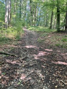 So viel Bedeutsames liegt in der Luft und ich höre nur Geräusche der Natur, spüre Einsamkeit. Ich erwähle diese Stelle zu einem Herzensort. So ein ehrfürchtiges Gefühl hatte ich bisher noch nicht auf meiner Wanderung. Ich bin die ganze Zeit ganz alleine, bis…