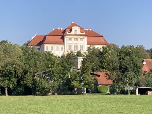 Jetzt befindet sich – vermutlich wegen der vielen Gewässer am Ufer – mal eine Zeit lang kein Weg entlang des Flusses und ich laufe einen Bogen, der mich in die Ortschaft Stepperg führt. Ich träume von einer Wirtschaft oder einer Cappuccino-Tankstelle, bin mir aber bewusst, wie naiv diese Vorstellung ist. Stattdessen finde ich ein stattliches Schloss vor und zückte mein Handy.