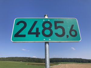 Dann laufe ich auf dem Damm und die Donau ist wieder ein breiter, erhabener Fluss. Alle zwei hundert Meter steht ein Schild, auf dem ich sehe, wie weit es noch bis zur Mündung ist. Ulm liegt nun hundert Kilometer stromaufwärts.