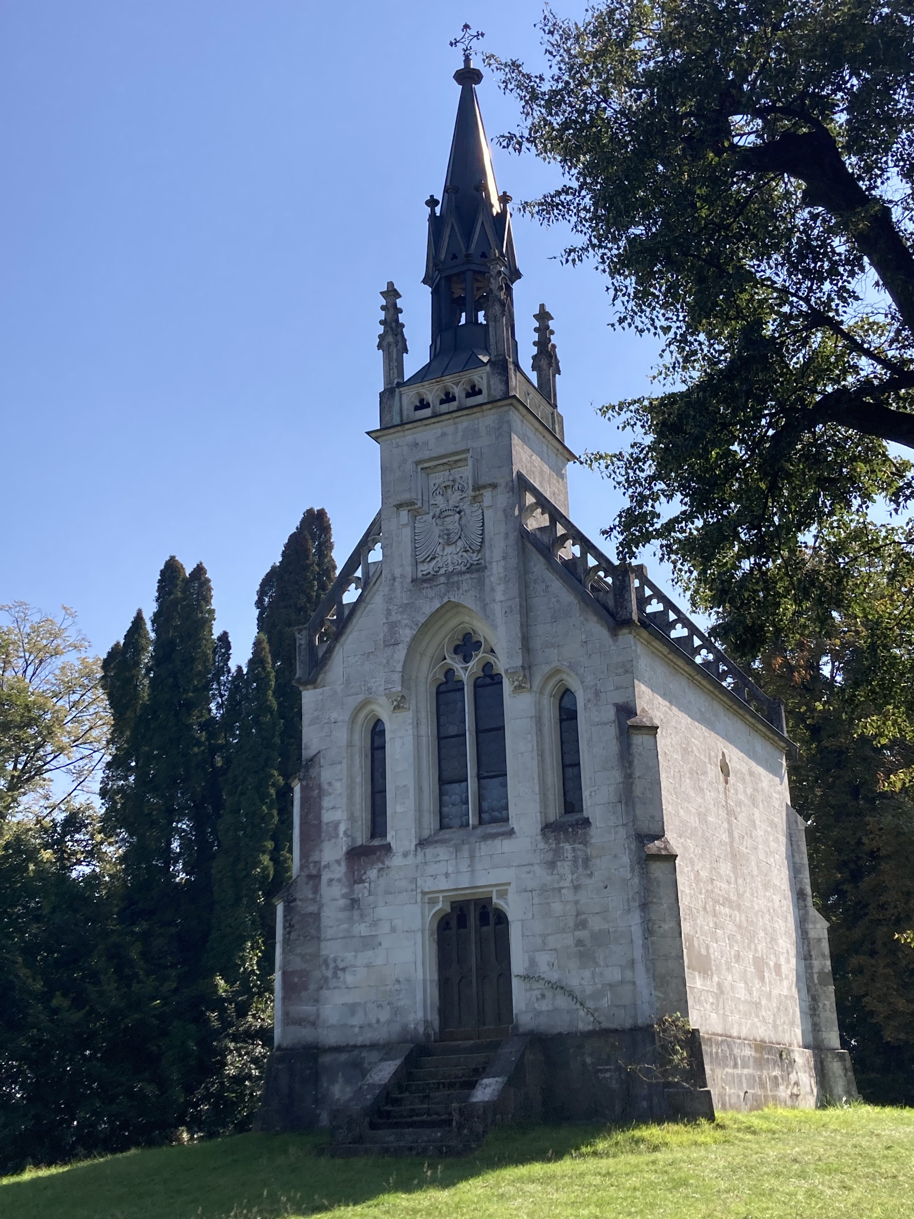 Eine Recherche ergibt dann, dass ich mich an einer neugotischen Gruftkapelle befinde (oben links). Die Kapelle daneben heißt St. Antonius-St. Anna (oben rechts). Sie war wirklich einmal eine Wallfahrtskirche, vor allem für Donauschwaben, die beispielsweise in Ungarn eine neue Heimat suchten. Hier war für viele der letzte Ort, an dem sie noch einmal die Sakramente empfangen konnten. Eine Einsiedelei befand sich auch einst auf diesem Grundstück.