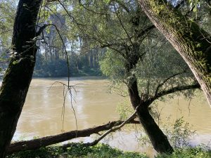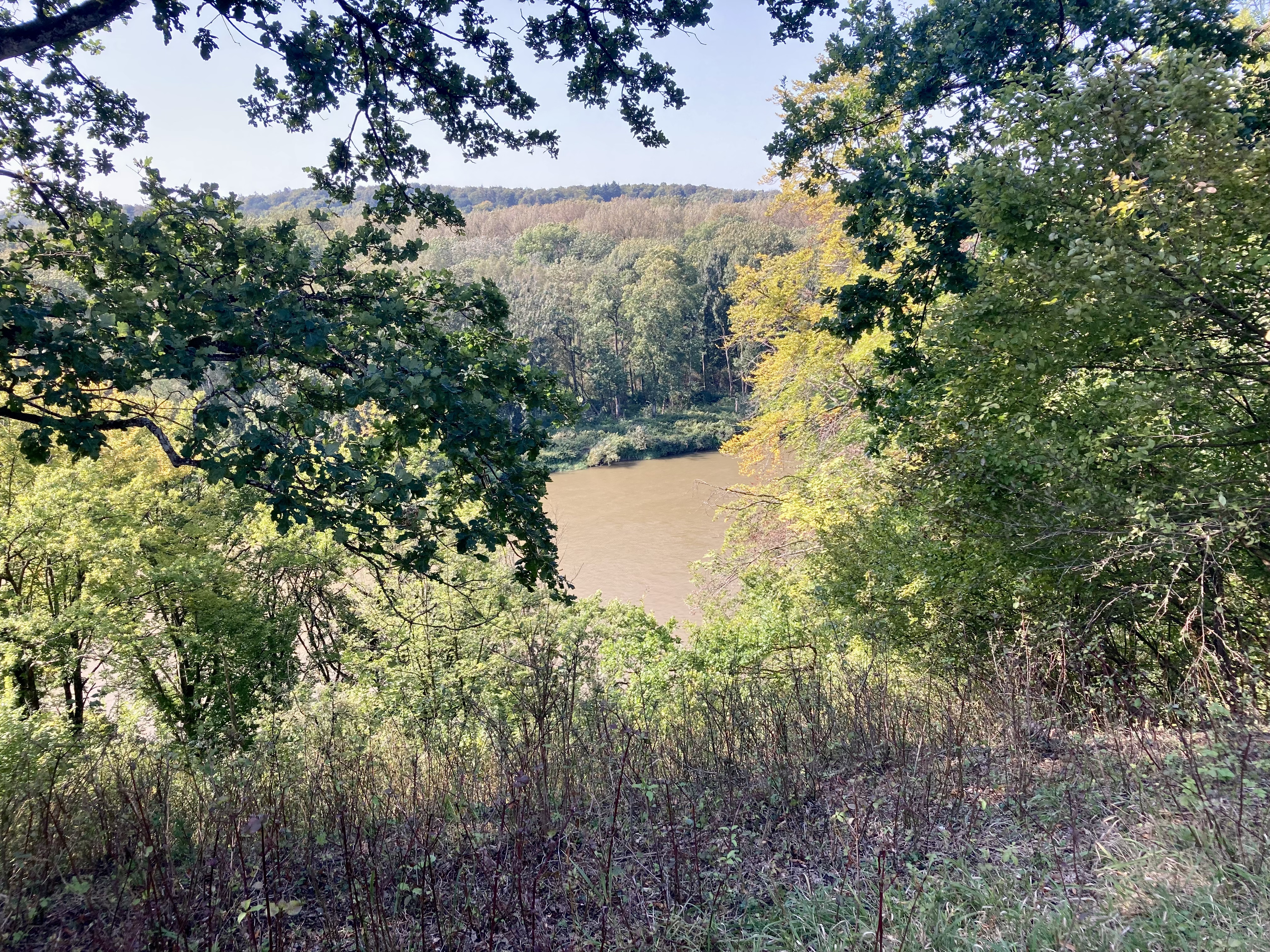 Hier ist nur Ruhe und Einsamkeit. Ich kann zwischen den Bäumen zu einem Donauarm hinunter sehen.
