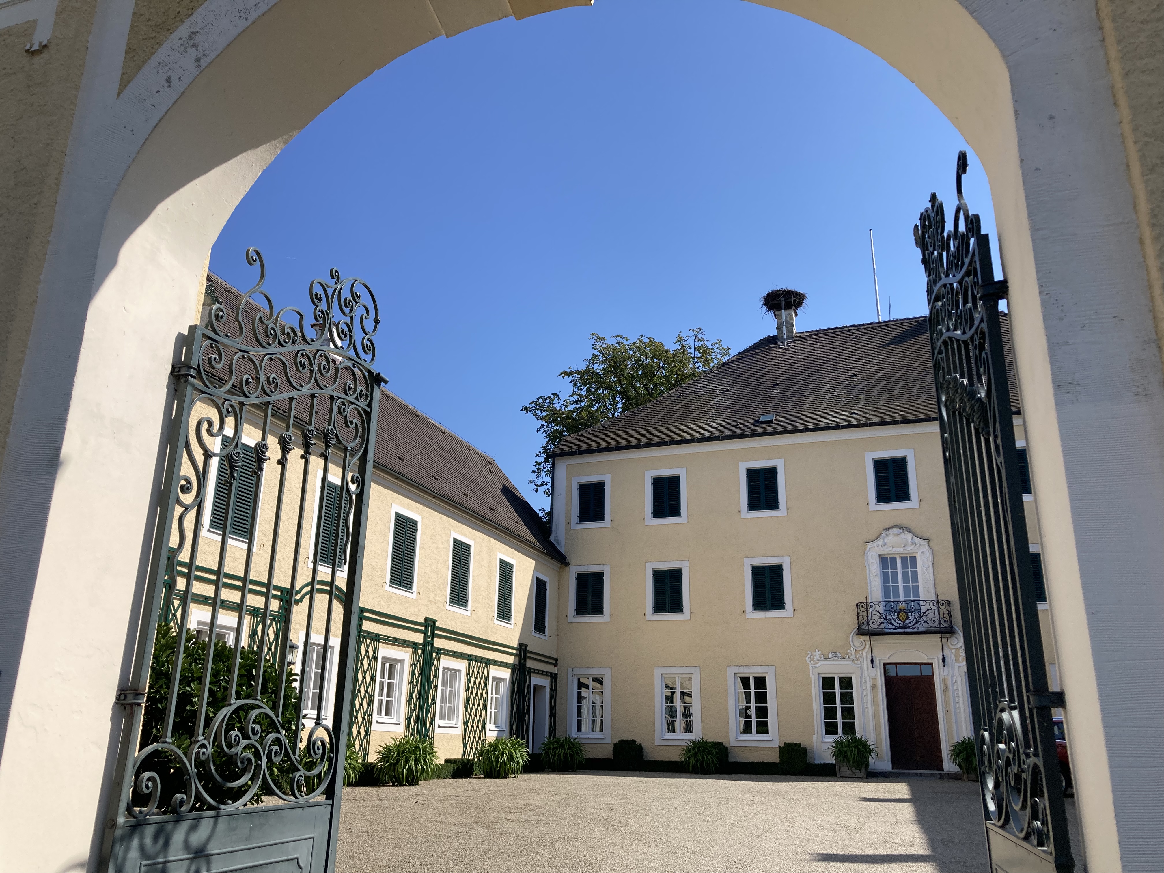 „Sie dürfen ruhig zum Fotografieren reinkommen!“ lädt mich ein seriös aussehender Herr ein. „Danke, wem gehört denn dieses schöne Anwesen?“ „Dem Schlossherrn… Das bin ich!“ Natürlich bin ich ausserordentlich beeindruckt. Wir kommen ins Gespräch. Er erzählt vom Schloss, von der aufwändigen Renovierung und von seiner Prämiumwohnlage mit Blick auf die Donau. Ich beeindrucke ihn mit meiner Wanderung. Er wünscht mir Glück. Ich verzichte auf den Hinweis, dass ich an seinem wunderschönen Wohnort eine Schlossschenke vermisse.