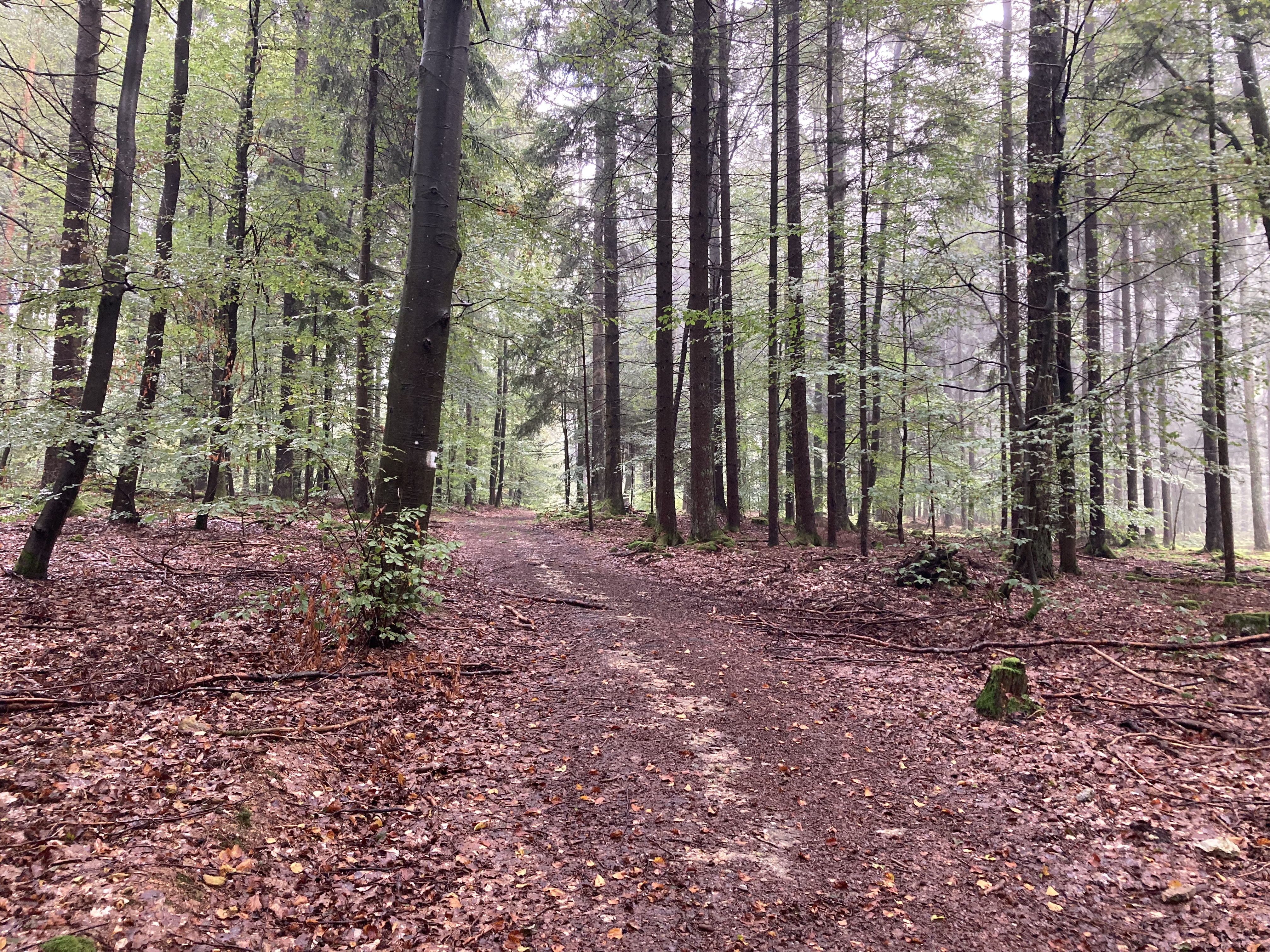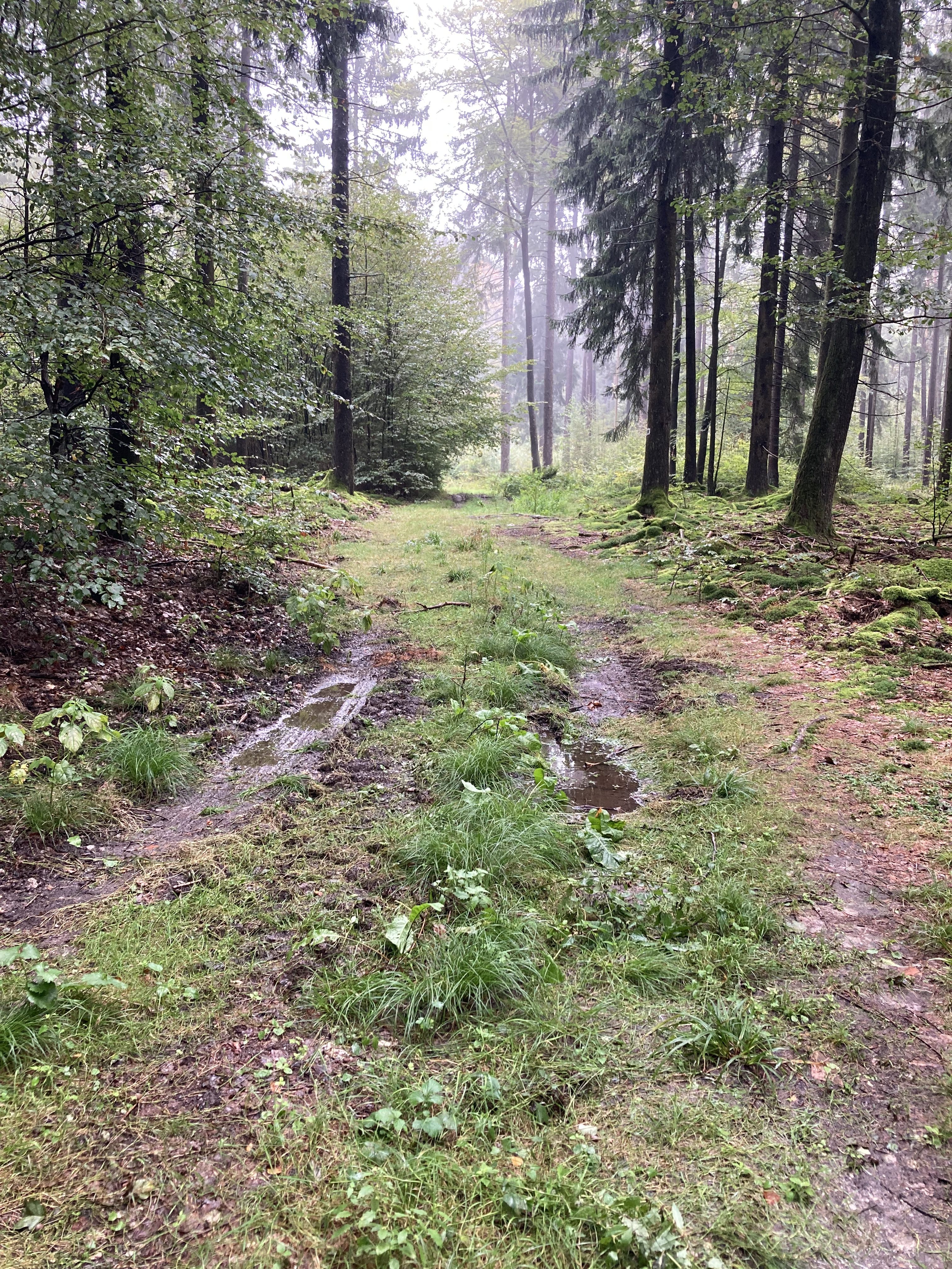 Es hat gestern (freundlicherweise in der Nacht) geregnet, aber manchmal fühle ich mich wie in einem Sumpf. Einen Teil des Weges befindet sich am Jurasteig, einem Rundwanderweg im Oberpfälzer Jura.