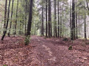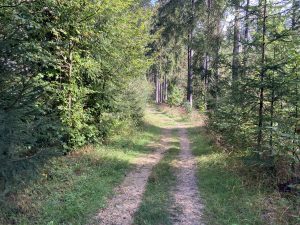 Heute laufe ich nicht der Donau entlang, es würde mein Tageslimit an Kilometern überschreiten. Auch der direkte Weg ist schon über dreißig Kilometer lang. Es geht bergauf-bergab meistens durch den Wald. Mir ist das eigentlich ganz willkommen nach meinen „Standbild-Erfahrungen“ am Wasser. Die erste Hälfte der Wanderung erfrischt und erfreut meine Seele, so viele unterschiedliche Wege, so viel abwechslungsreiches lichtdurchflutetes Grün. Ein Rebhuhn und ein Reh werden von mir aufgeschreckt, sorry!