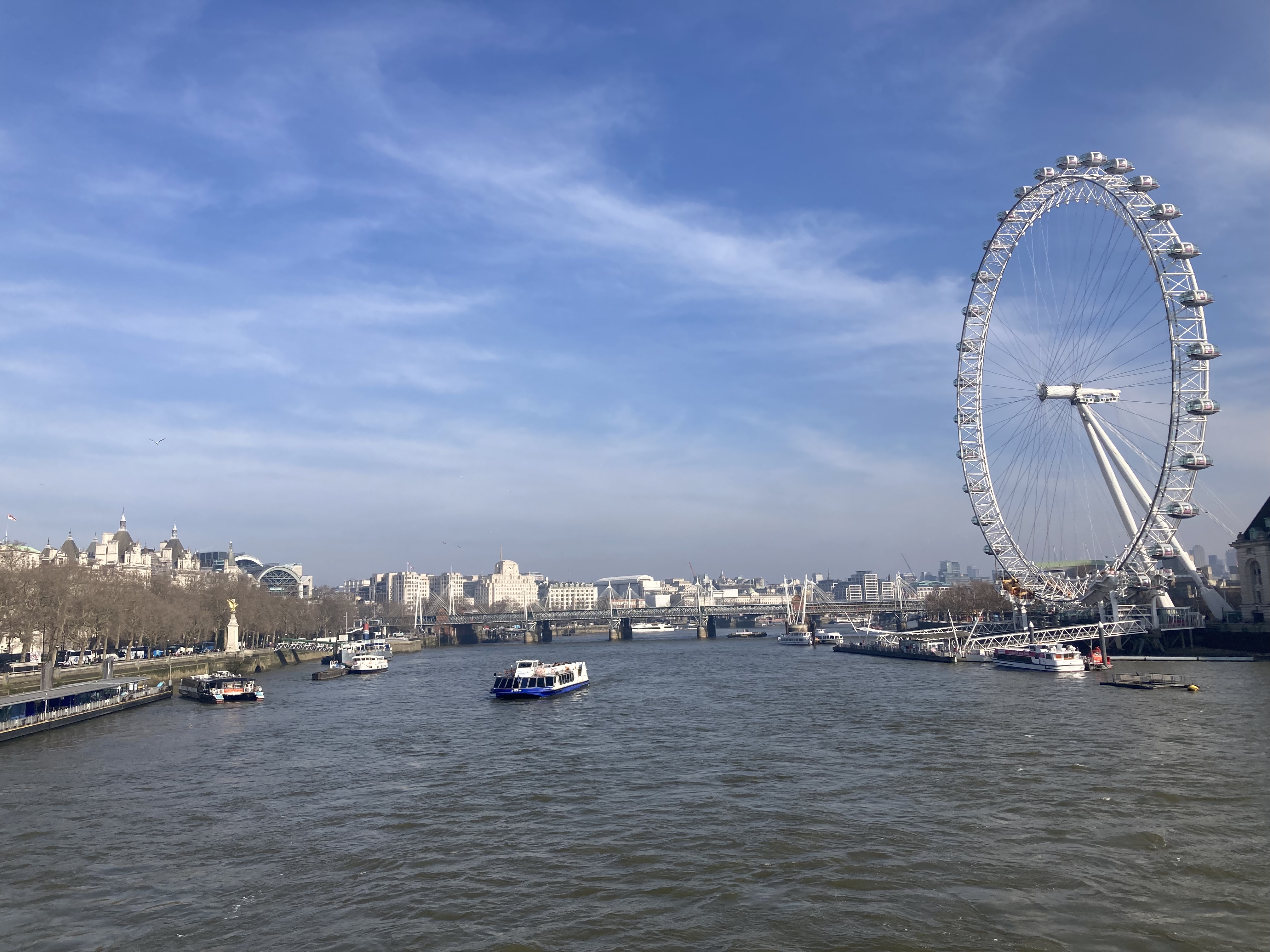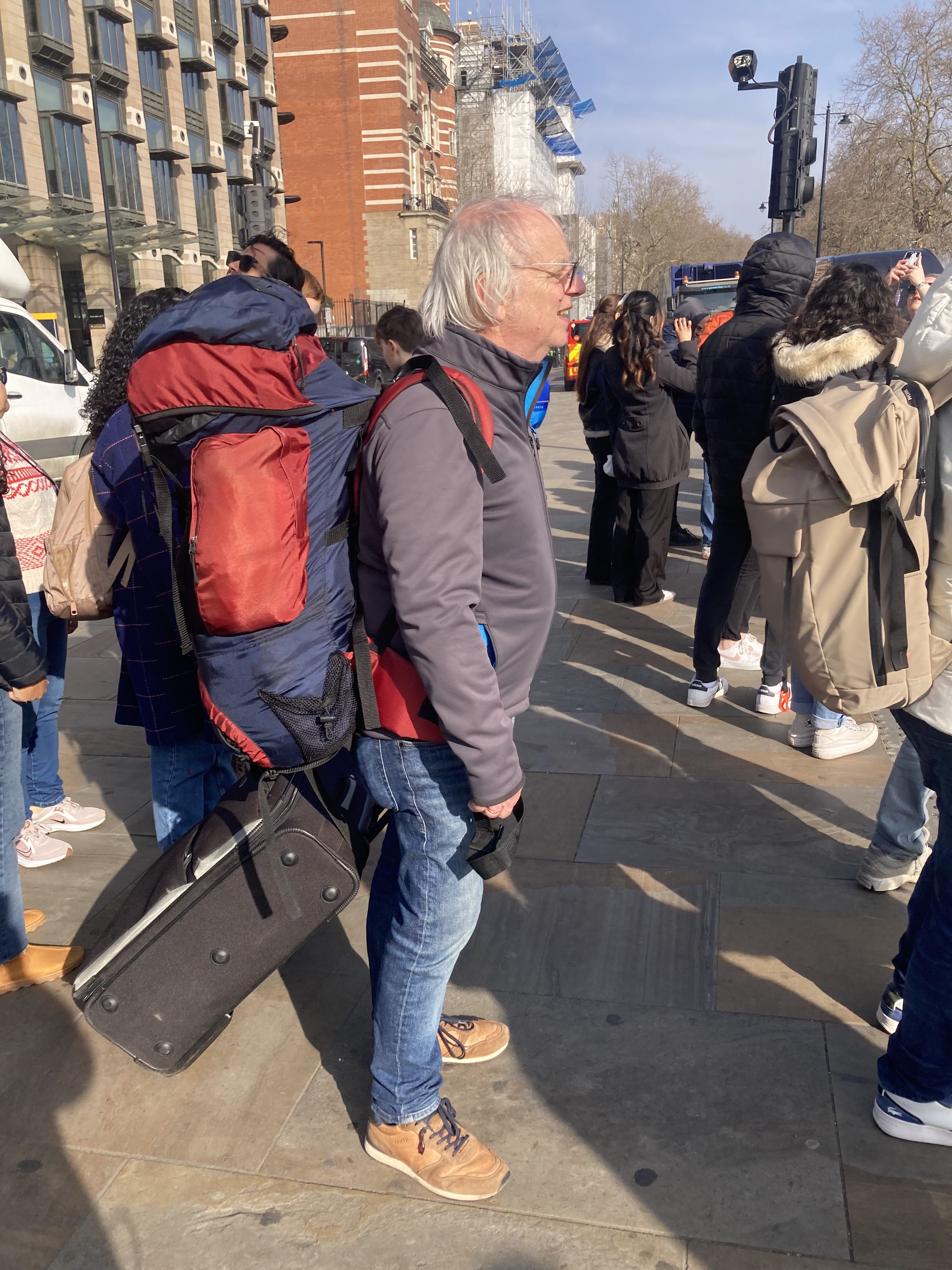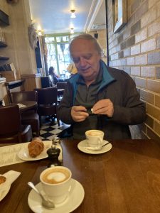 Ein wunderbarer, sonniger Tag heute, wenn auch ziemlich frisch. Wir beleben unsere Geister nach dieser fast schlaflosen Nacht mit Kaffee im „Black Sheep“, einer britischen Kaffeehaus-Kette. Dann hieven wir unser Gepäck von Victoria nach Waterloo Station.