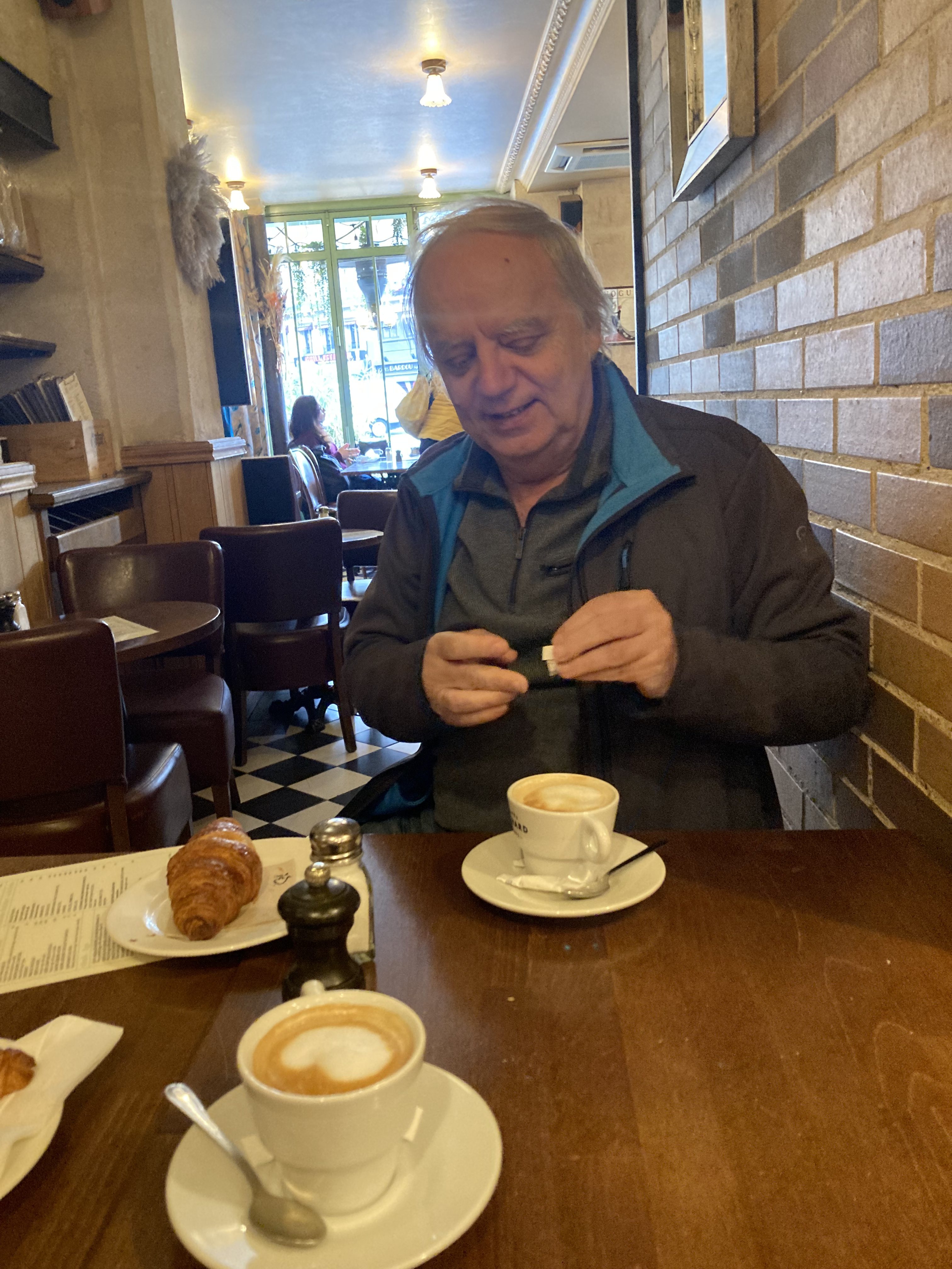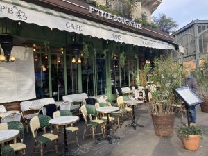 Die Sonne zeigt sich an ersten Morgen, aber leicht milchig. Der Oleander versprüht bereits einen Hauch von Frühling. Die Straßen im Bahnhofsviertel kommen uns von früheren Paris-Besuchen bekannt vor. Leichte Schatten bemalen den Weg zu „unserem“ Café.