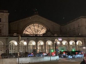 Unser NH-Hotel befindet sich direkt an Bahnhof. Es zeichnet sich besonders durch Baustellencharme aus. Unser Zimmer weist alles auf, was wir uns so von einem Hotelzimmer erwarten, alles außer Quadratmeter. Diese sind umgekehrt proportional zu den Euros, die wir dafür bezahlen. Egal, die erste Nacht ist warm und ruhig.