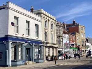 Ich kann mich noch erinnern, wie überrascht ich war, als ich zum ersten Mal die kleinen Häuser in der Southampton Road sah: Grau und etwas vernachlässigt wirkten sie. Beim Blick von vorne in die Häuser konnte ich gleich durchs Hinterfenster in den Garten blicken. An der Größe hat sich nicht viel geändert, aber die Häuschen sind jetzt teilweise regelrecht herausgeputzt unter Berücksichtigung strenger Denkmalschutzauflagen. Leider können sich heute nur noch wenige Bewohner von Lymington solch ein Kleinod leisten. Die meisten Besitzer wohnen in London, ihre Immobilie dient lediglich als Wochenenddomizil.
