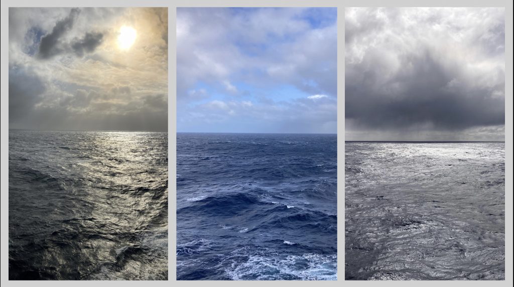 Fast eine Woche auf den Atlantik, wird es Euch da nicht langweilig? Nein! Selbst das Wasser sieht jedes Mal anders aus, wenn wir aus dem Fenster sehen.