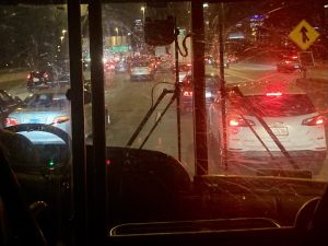 Es rüttelt und lärmt, bis wir nach einer fast unendlichen Zahl an Stopps wieder aus der Stadt heraus sind. An der Haltestelle Rosemont müssen wir noch lange in der Kälte warten, bis uns endlich ein Taxi zum Hotel bringt.