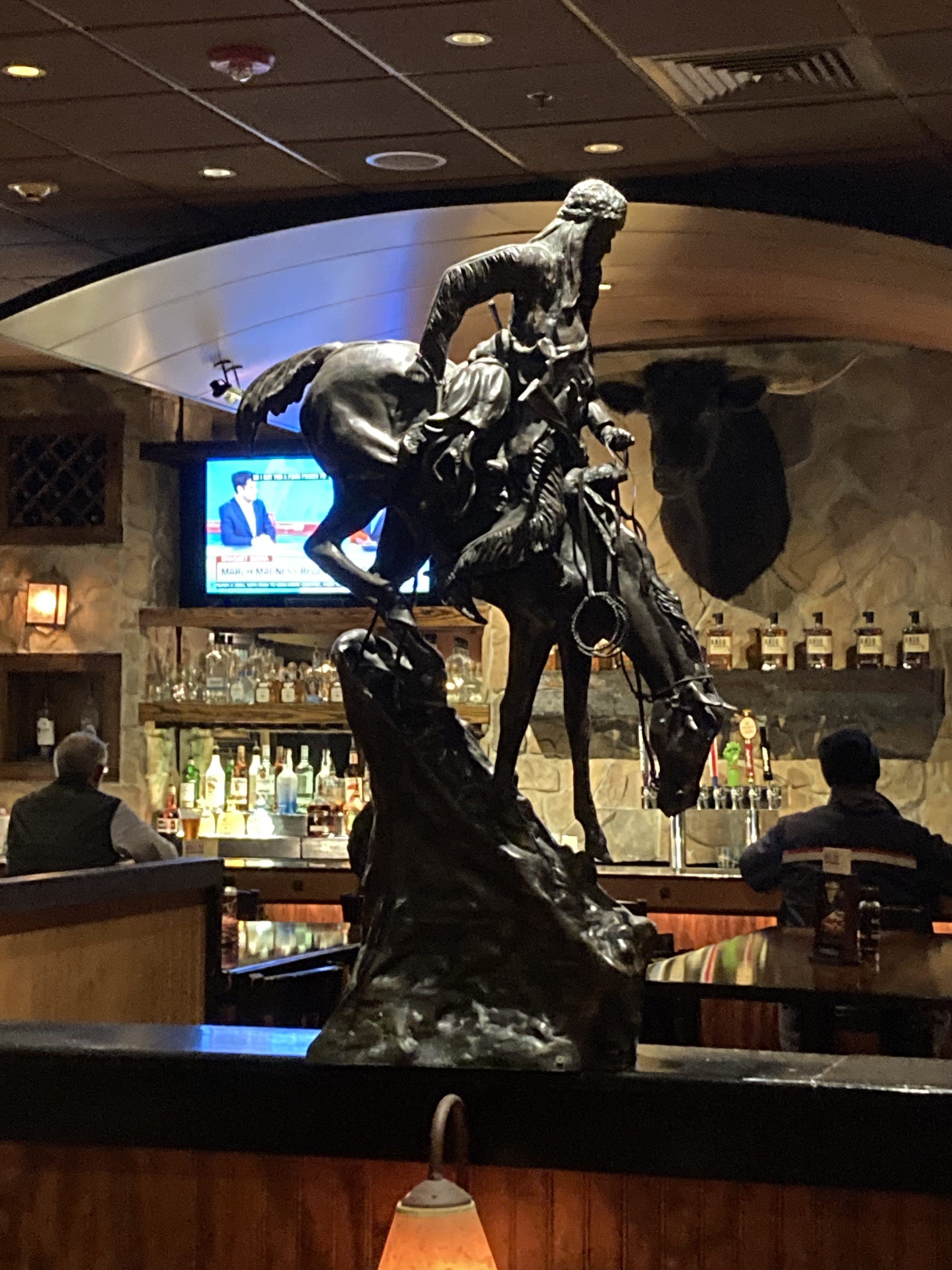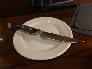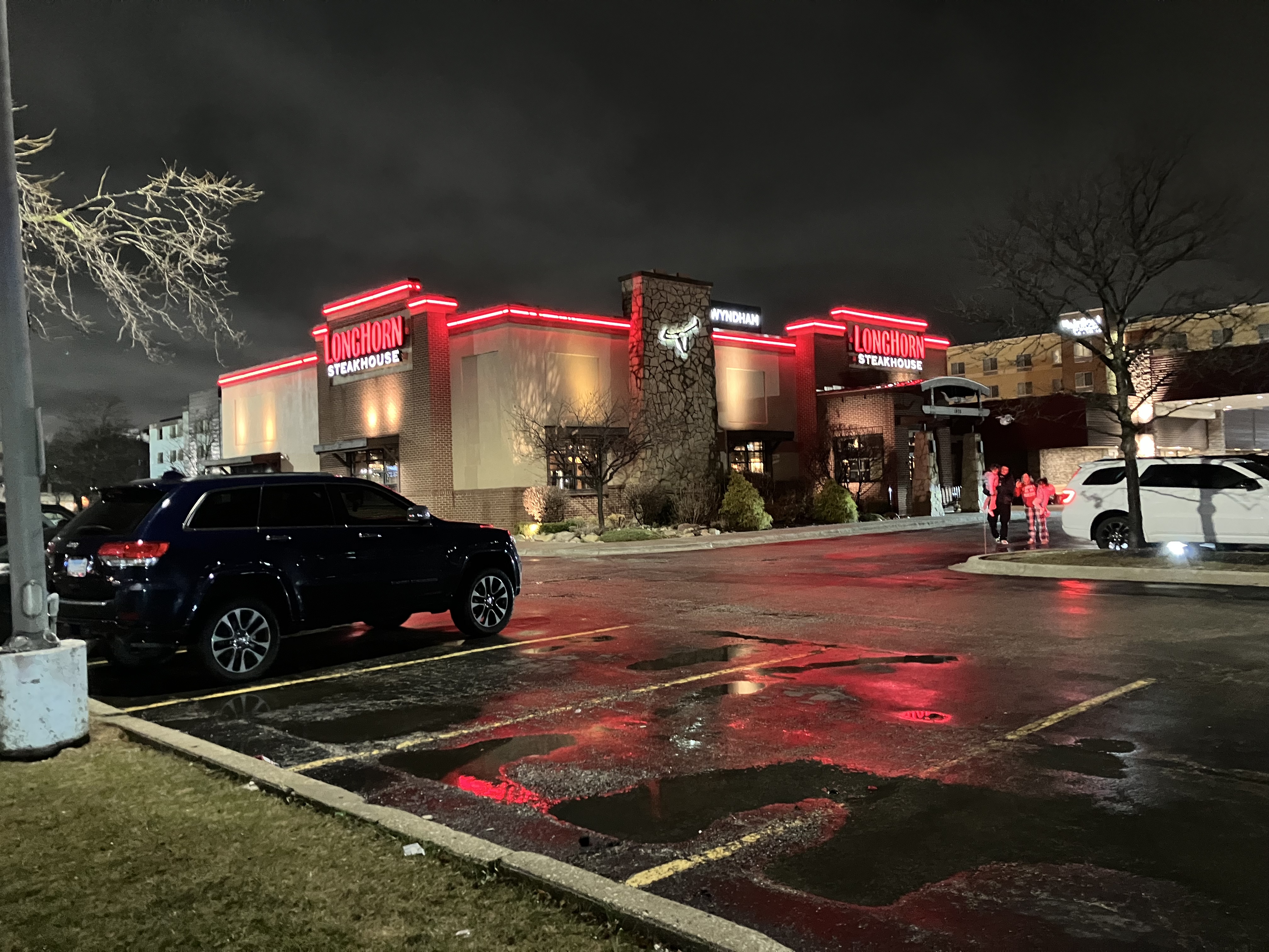 Vom Hotel aus müssen wir lediglich insgesamt 10 Spuren von zwei Straßen ohne Ampel überqueren, und schon sind wir im gemütlichen Steakhouse.