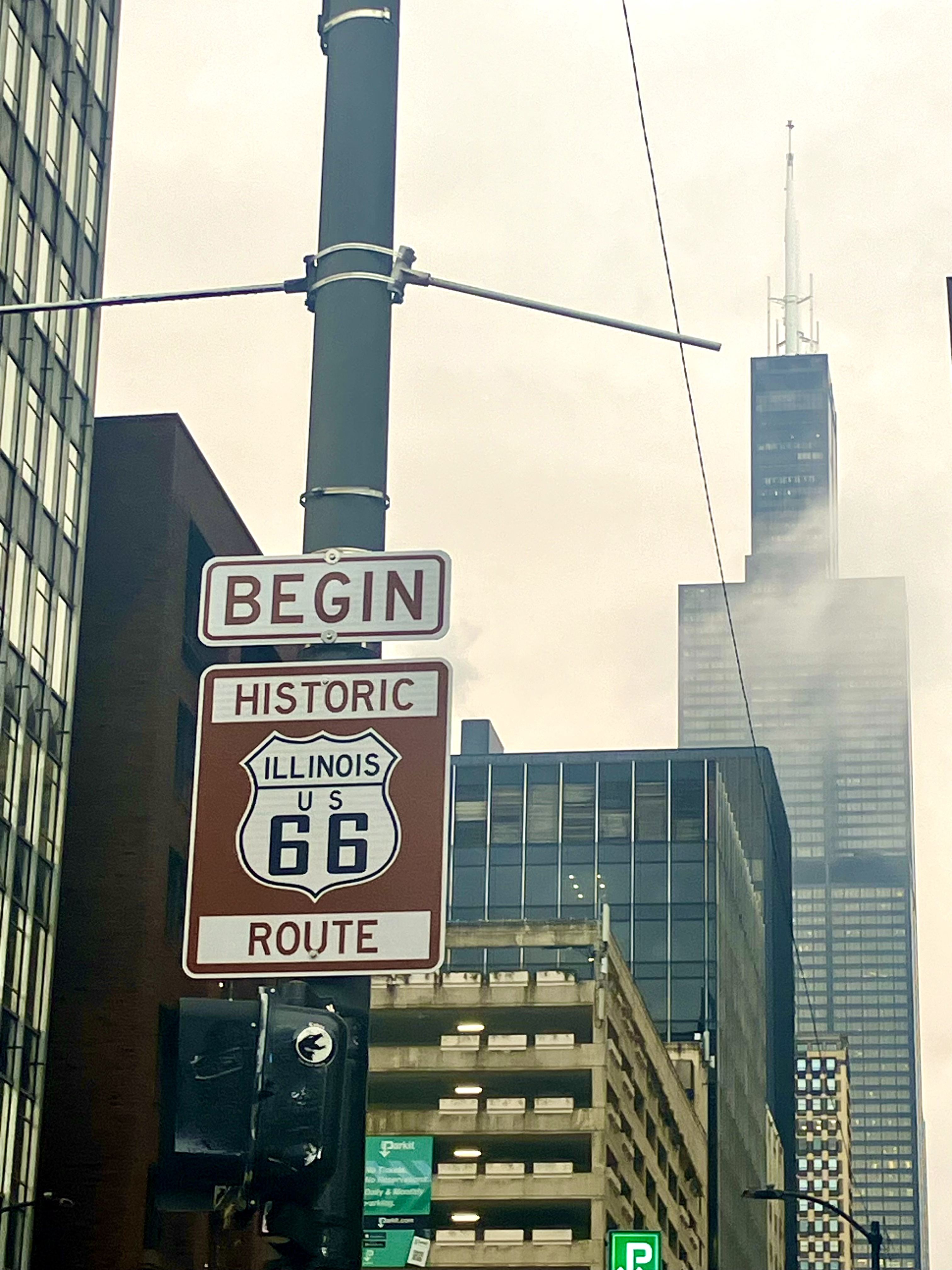 Die fast 4000 km lange „Mother Road“ von 1926 gilt als eine der ersten durchgehenden, befestigten Wege zur Westküste und verband Chicago mit LA. Obwohl nur noch Teilstücke bestehen, ist sie heutzutage ein Highlight für Touristen. Auch wir werden, laut Plan, ein kleines Stück dieser legendären Straße befahren. Also ist es völlig stimmig, hier in Chicago den Startpunkt zu besuchen.