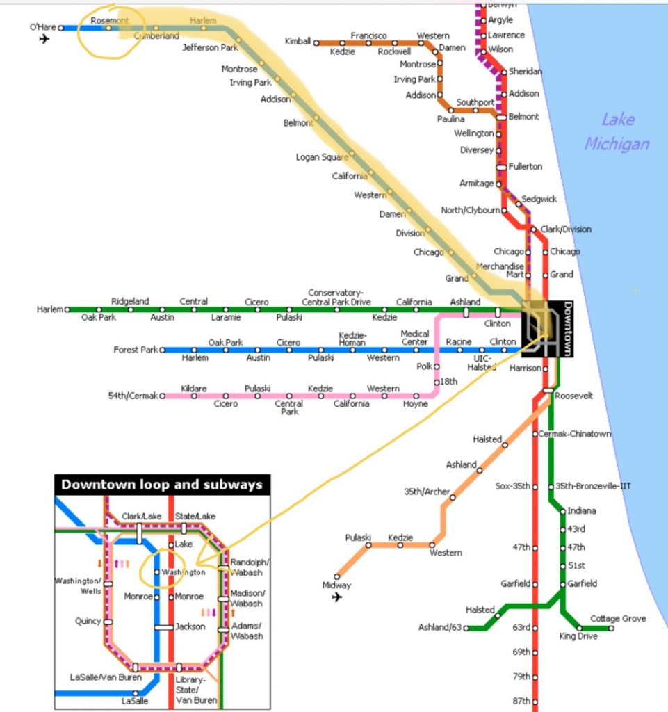 „Next is Washington!“, tönt es nach einer ganzen Weile durch die Lautsprecher der Metro. Wir steigen aus, denn wir befinden uns in der „Loop“. Dies ist die Schienenschleife, welche der Innenstadt ihren Spitznamen gibt. Ein andere Bezeichnung für „Downtown“ also.
