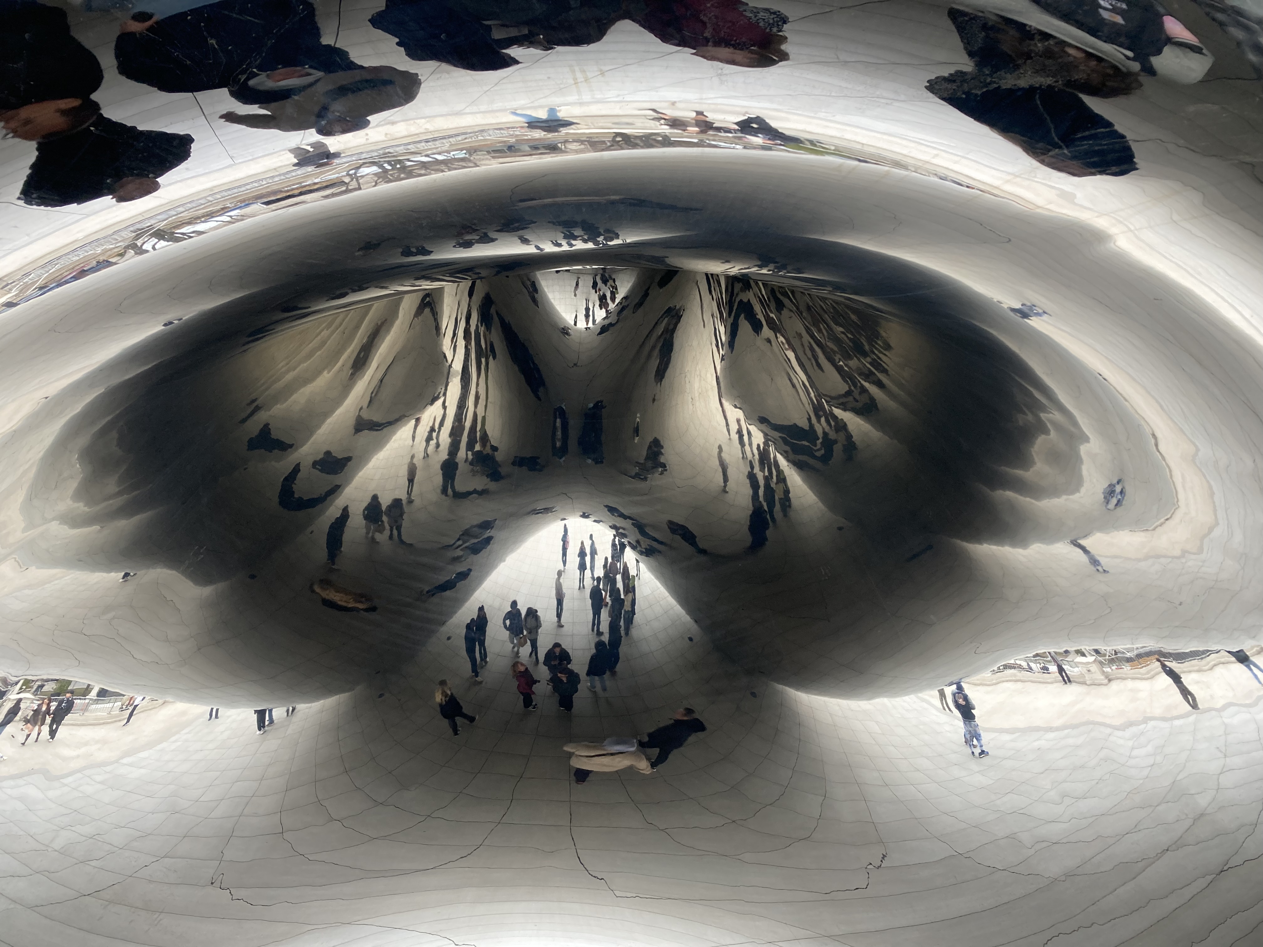 „Jetzt verstehe ich, warum du unbedingt hier her wolltest!“ Die „Bohne“ zeigt mir mit ihrer stark reflektierenden Oberfläche alle möglichen Variationen der Skyline und des Parks. Der Künstler Anish Kapor ließ sich durch flüssiges Quecksilber zu diesem Meisterwerk inspirieren, gut nachvollziehbar.