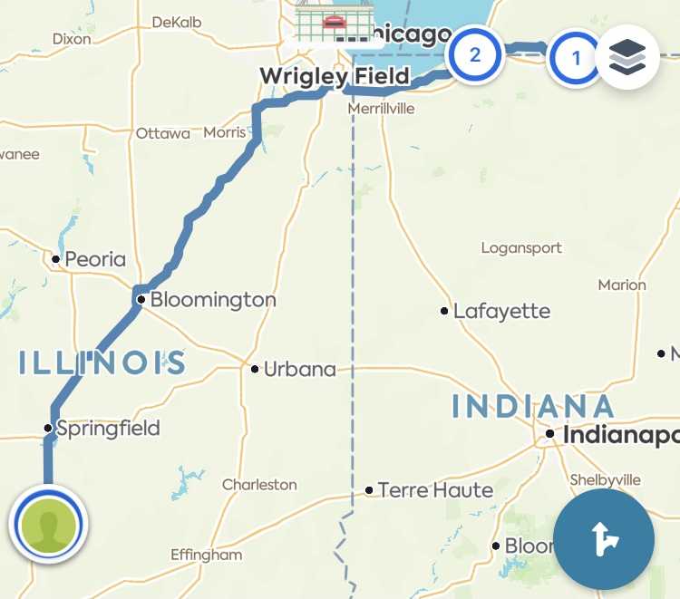 Wir kommen sowohl durch Indiana als auch durch Michigan und verbringen dann die Nacht auf einem Campingplatz in Illinois, gute hundert Kilometer südlich von Springfield.