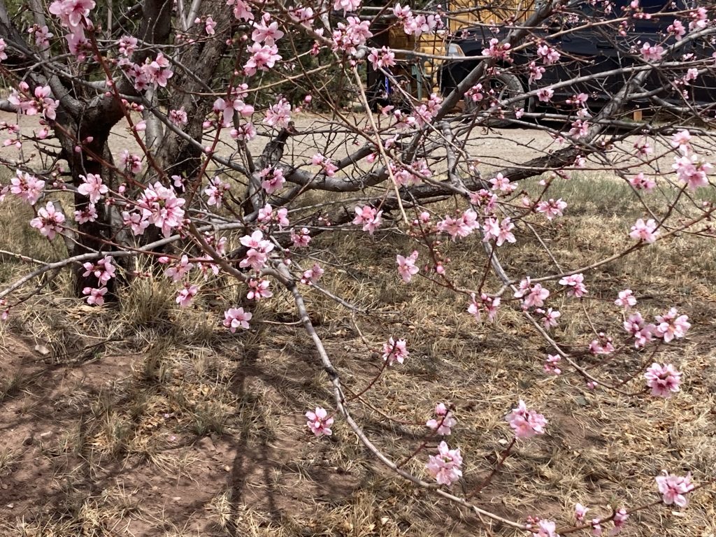 Wir freuen uns an den Wüstenpflanzen genauso wie über Frühlingsboten, so wie dieser Pfirsichbaum: