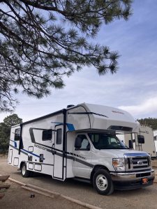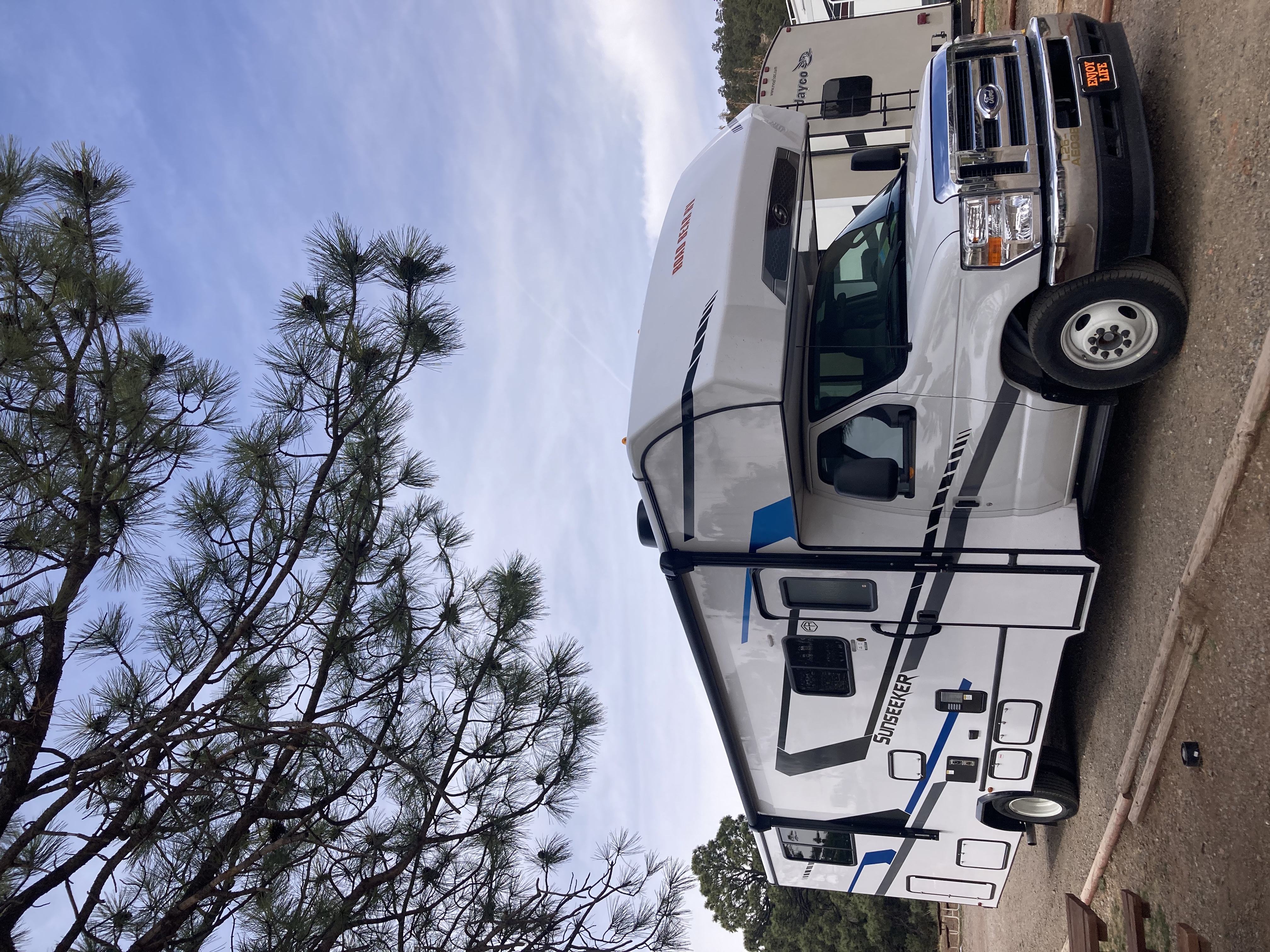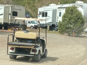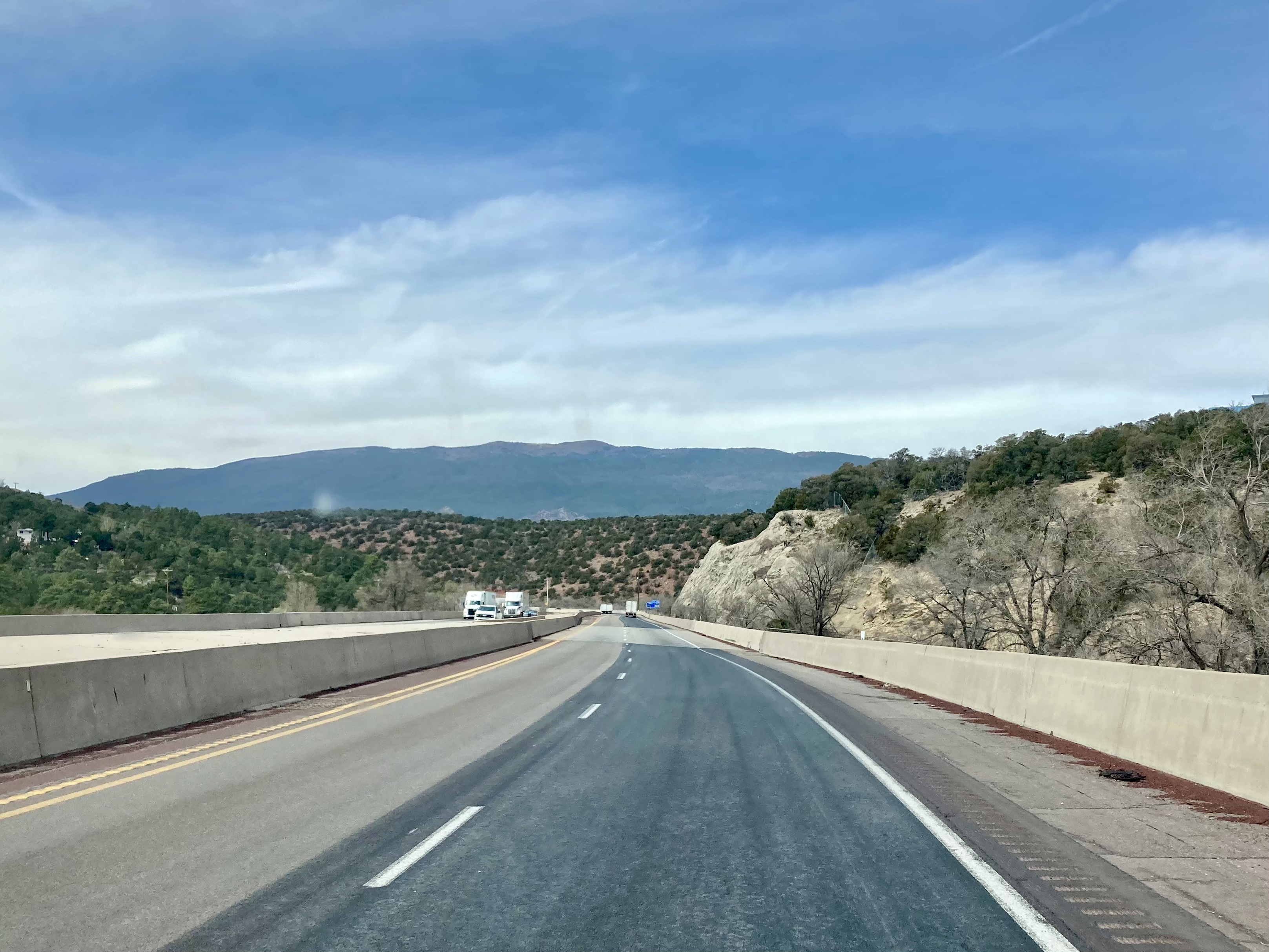 Während unserer knapp 50 Kilometer weiten Fahrt verlassen wir topfebenes Gebiet und der Bär schnauft hoch in die Sandia Mountains, bis zum heutigen Ziel auf 2066 Meter Höhe. Konrad hat, heute am Samstag, in weiser Voraussicht schon am Morgen gebucht.
