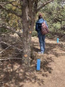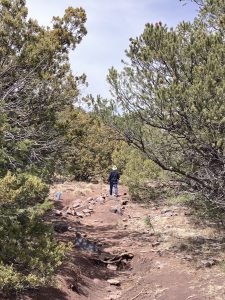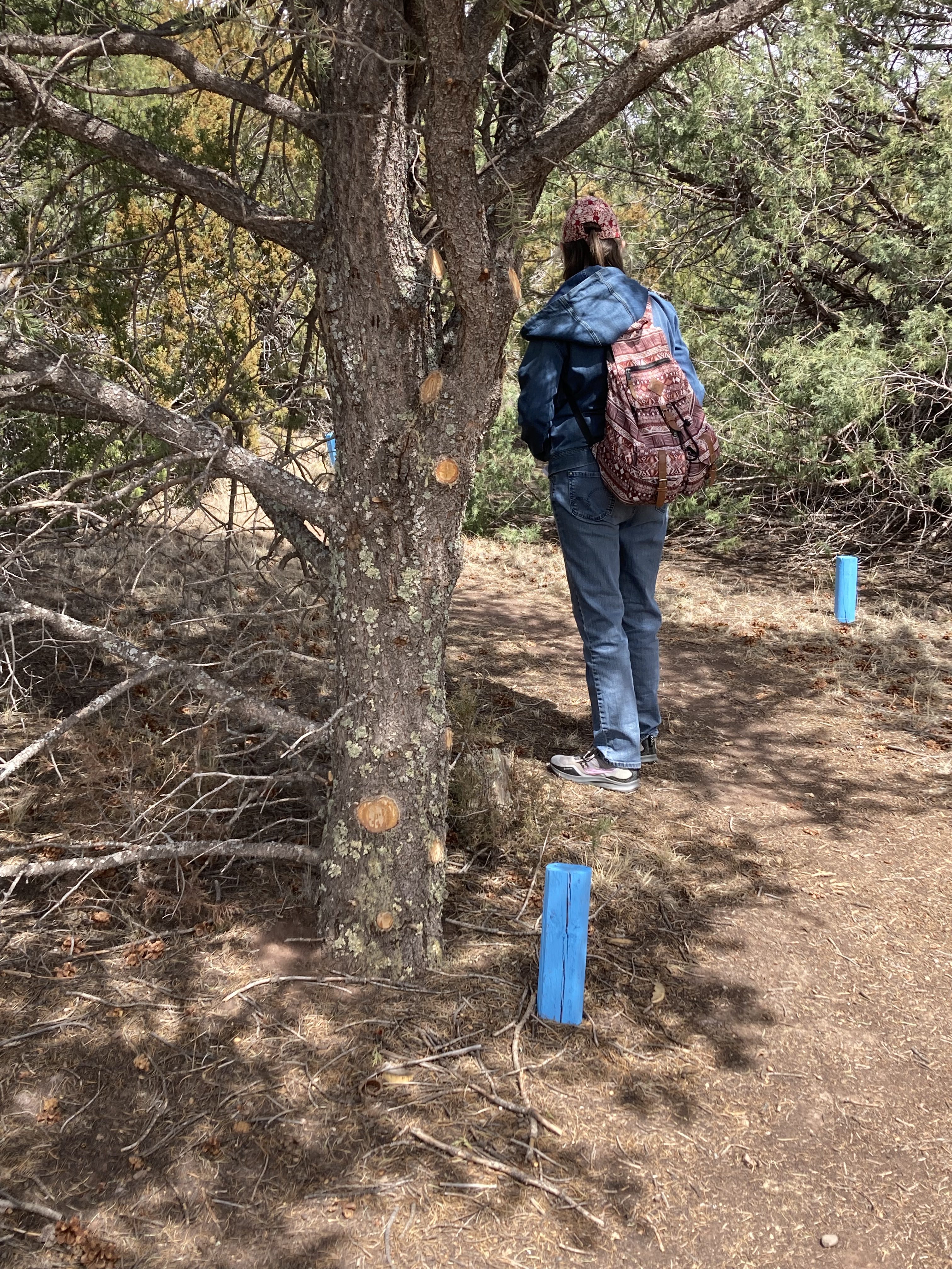 Vom Campground aus gibt es einen Zugang zu diesem Trail, auf dem wir ein kleines Stück unterwegs sind. Immer den Pfosten folgen, ja nicht den Weg verlassen⚠️⚠️⚠️ – es seien schon Besucher auf dem Weg verlorengegangen, warnt die Betreiberin des Platzes.