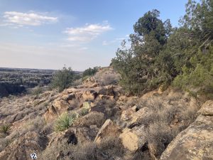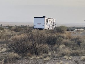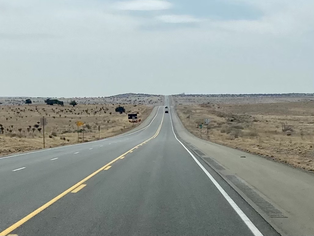 Nach einigem Hin und Her verlassen wir die Sandia Mountains wieder, und begeben uns gen Süden auf einen Teil des Weges, der in der Vorplanung unter „Südroute“ lief. Hier ist es eher kühl und es wird vermutlich auf dem weiteren Weg nach Las Vegas nicht sonderlich wärmer. Laut Wettervorhersage soll es in den kommenden Tagen sogar noch kälter werden, bis hin zu leichtem Nachtfrost. Das tut weder uns gut noch dem WoMo, das wir bereits vor einigen Tagen „de-winterized“ haben. Also nichts wie weg hier und erst einmal wieder durch topfebenes Land.