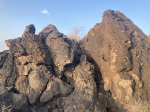 Ein ganzes Tal voller schwarzer Lava und weit und breit kein Vulkan zu sehen. Vor 5000 Jahren floss hier einfach die Lava aus irgendwelchen Erdspalten. Das war wohl ein einmaliges Ereignis und es gab keine Zeit einen Vulkan zu bilden. Die fruchtbare Erde aus der verwitterten Lava ermöglichte die Verbreitung vieler verschiedener Planzen, die den Ureinwohnern dieser Gegend das Leben erleichterten. Lehmvorkommen am Rande des Gebiets wurde zur Herstellung von Töpferwaren verwendet.