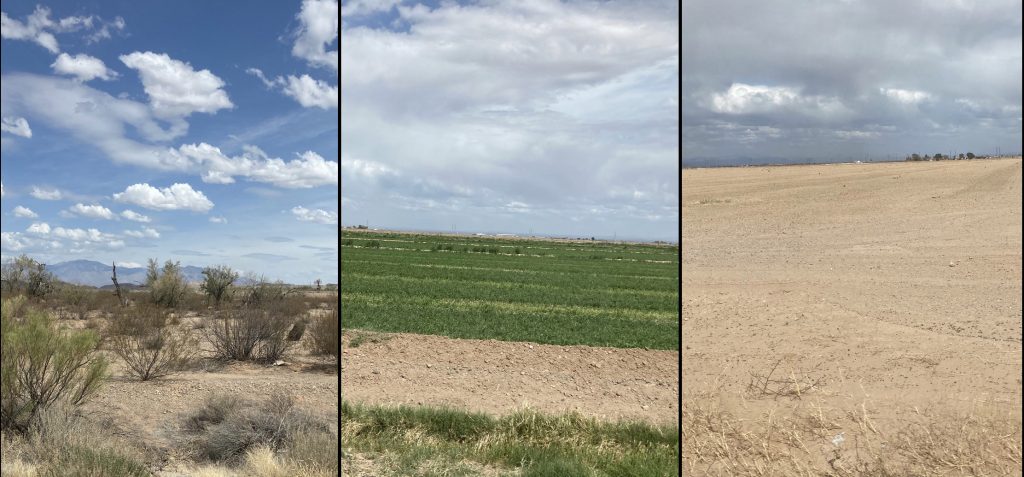 Wir sind hier in der Wüste. Es ist erstaunlich grün hier, in der Nähe von Phoenix. Es wird sogar Getreide angebaut. Farmen und Viehhaltung sind weit verbreitet. Das wäre ohne intensive Bewässerung nicht möglich.