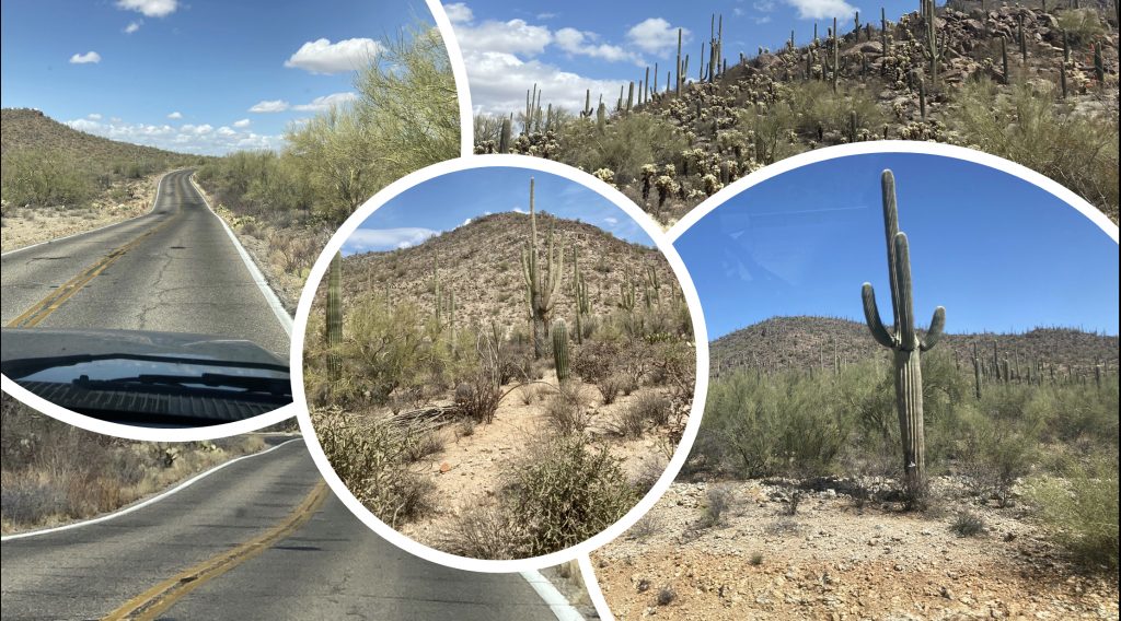 Die Gegend wurde damals geschickt gewählt. Die Berge, die Sonora-Wüste und die Saguaros bilden eine unverwechselbare, natürlich Kulisse. Kein Wunder, dass der Nationalpark nicht weit weg ist: unsere zweite Station des Tages.