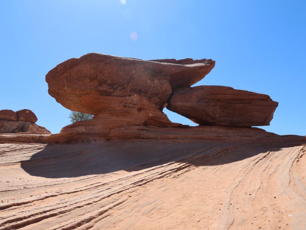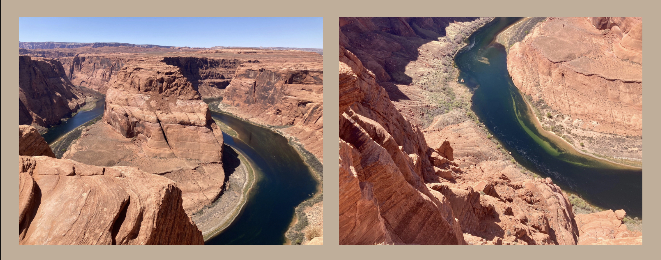 Die Flussschleife ist Teil des Glen Canyon und hat sich von unserem Aussichtspunkt aus einst 300 Meter tief eingeschnitten. Die Schichtenfolge des Gesteins wird als Navajo-Sandstein bezeichnet.