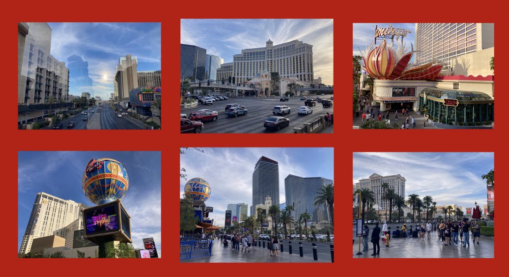 Der berühmte Strip: Von überall dröhnt laute Musik, live oder Konserve. Es blinkt und tutet, und Menschen, Menschen, Menschen, teilweise schrill oder anzüglich angezogen. Kein Problem, aber die vielen Individuen, deren Existenzen gescheitert zu sein scheinen, stimmen nachdenklich. Eine gebeugte, zahnlose Frau, beispielsweise, schiebt einen Zwillingswagen, in dem sich ein kleiner Hund und vermutlich ihr ganzer Besitz befinden. Ein junger, verstrubbelter Mann mit runtergekommener Kleidung versucht halbherzig irgendjemand für ein Glücksspiel zu motivierten.