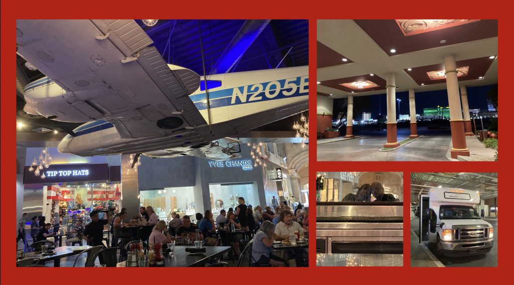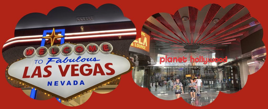 Aber wir sind ja eigentlich nicht wegen der Flieger in der Stadt, sondern wollen sie schon einmal mit eigenen Augen sehen, nachdem uns schon so viel von ihr erzählt wurde. Das Hotel betreibt einen Shuttlebus zum „Planet Hollywood“, der Indoor-Unterhaltungsmeile, die zu einem Casino-Hotel gehört.