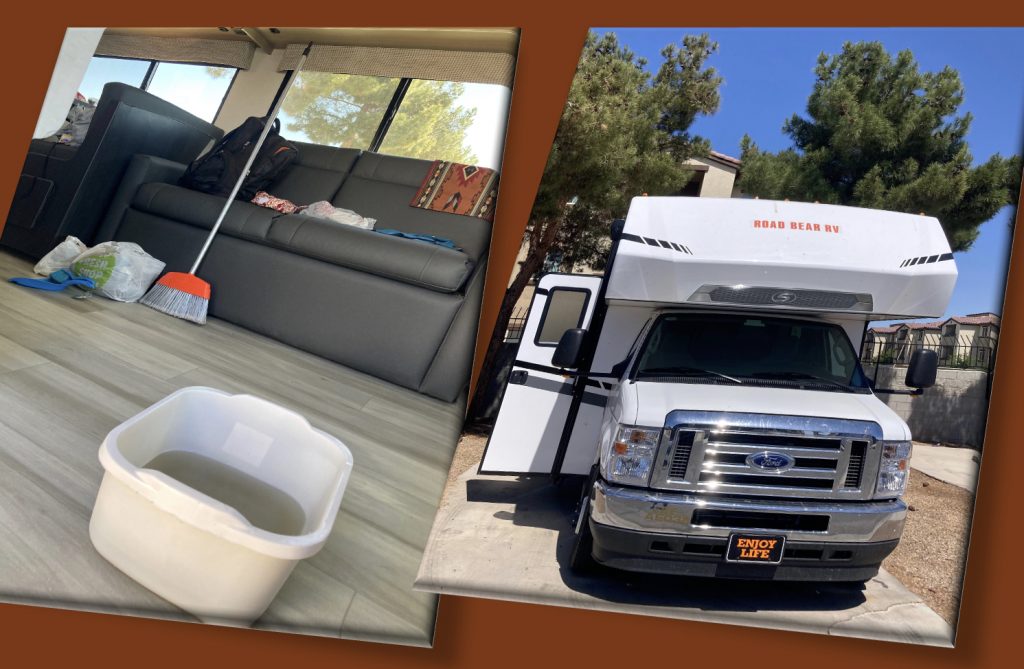 Nach drei Wochen Reise steht eine Grundreinigung an, innen zumindest. Der Wüstensand (und auch wir) haben beeindruckende Spuren hinterlassen.