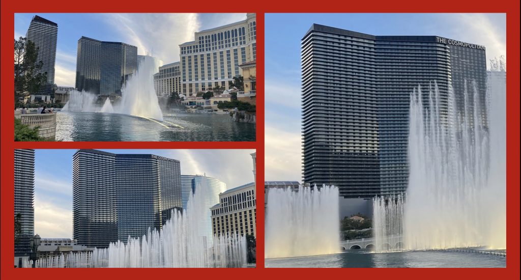 Die „Fountains of Bellagio Water Show“ – mit passender klassischer Musik – beeindruckt uns dann aber endlich doch. Alles unter freiem Spätnachmittagshimmel!